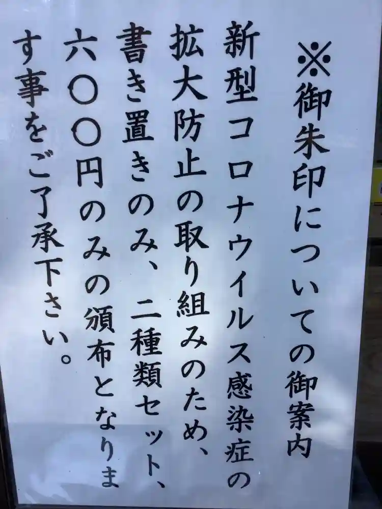 | 感染症対策内容 | 社務所前にはアルコールスプレーあります |