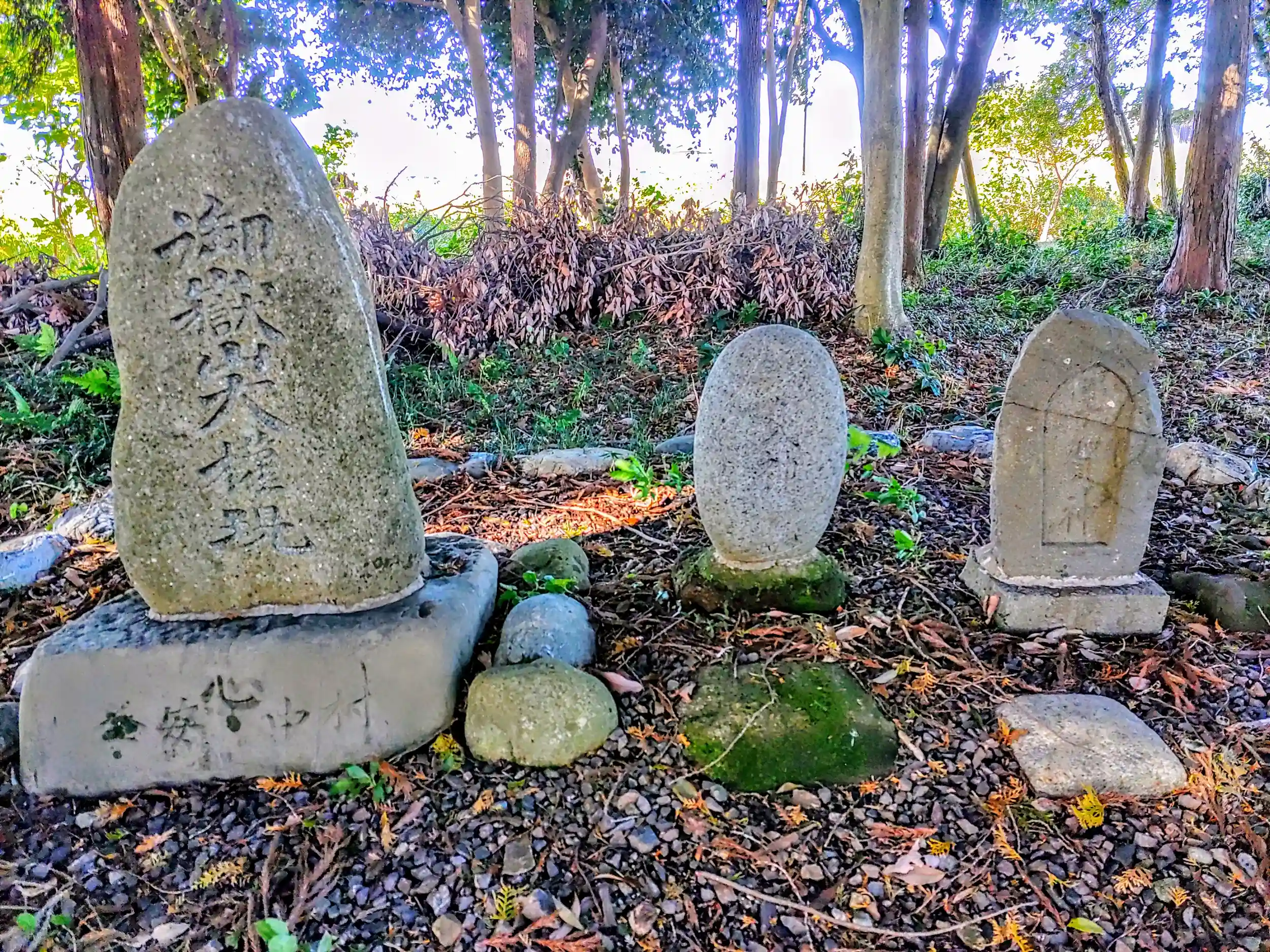 右が名馬「磨墨」のお墓。左が「隅之方」の墓。