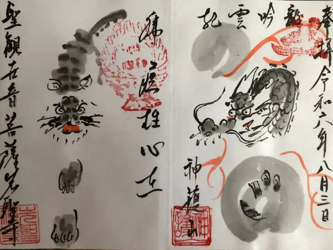 先聖寺ではじめて御朱印を頂く場合、デザインは決まっていて、龍と虎を描いて貰えます。