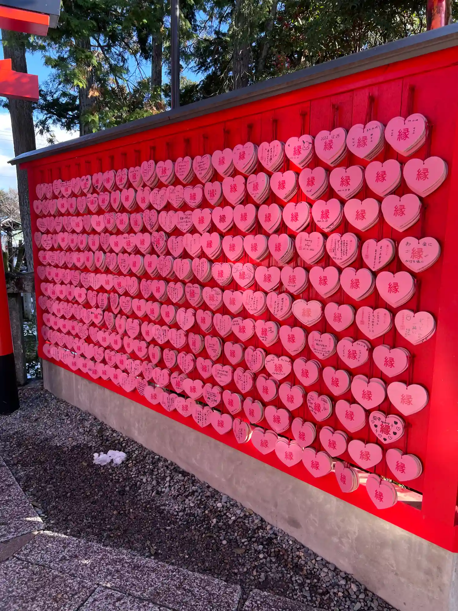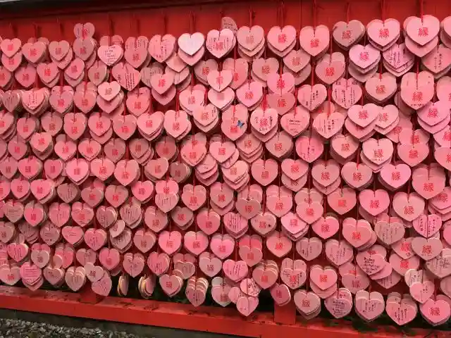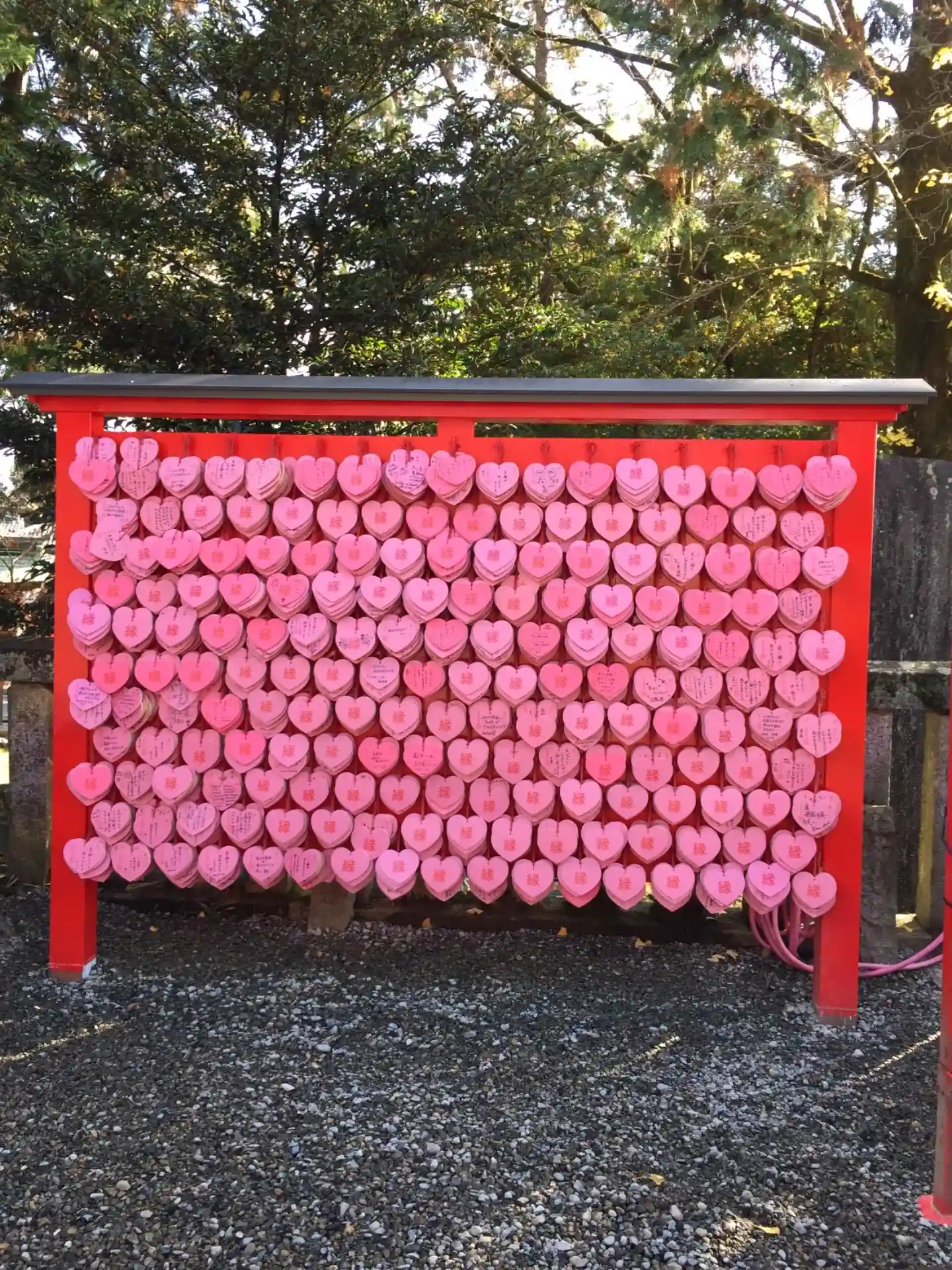 境内にはハート型の絵馬がたくさん😅
