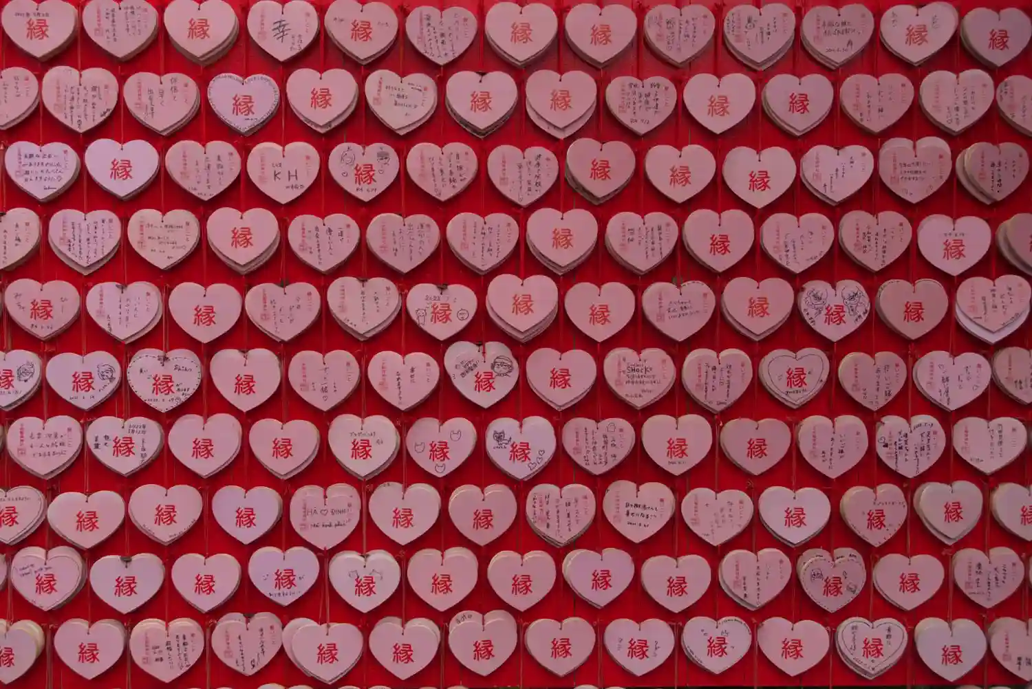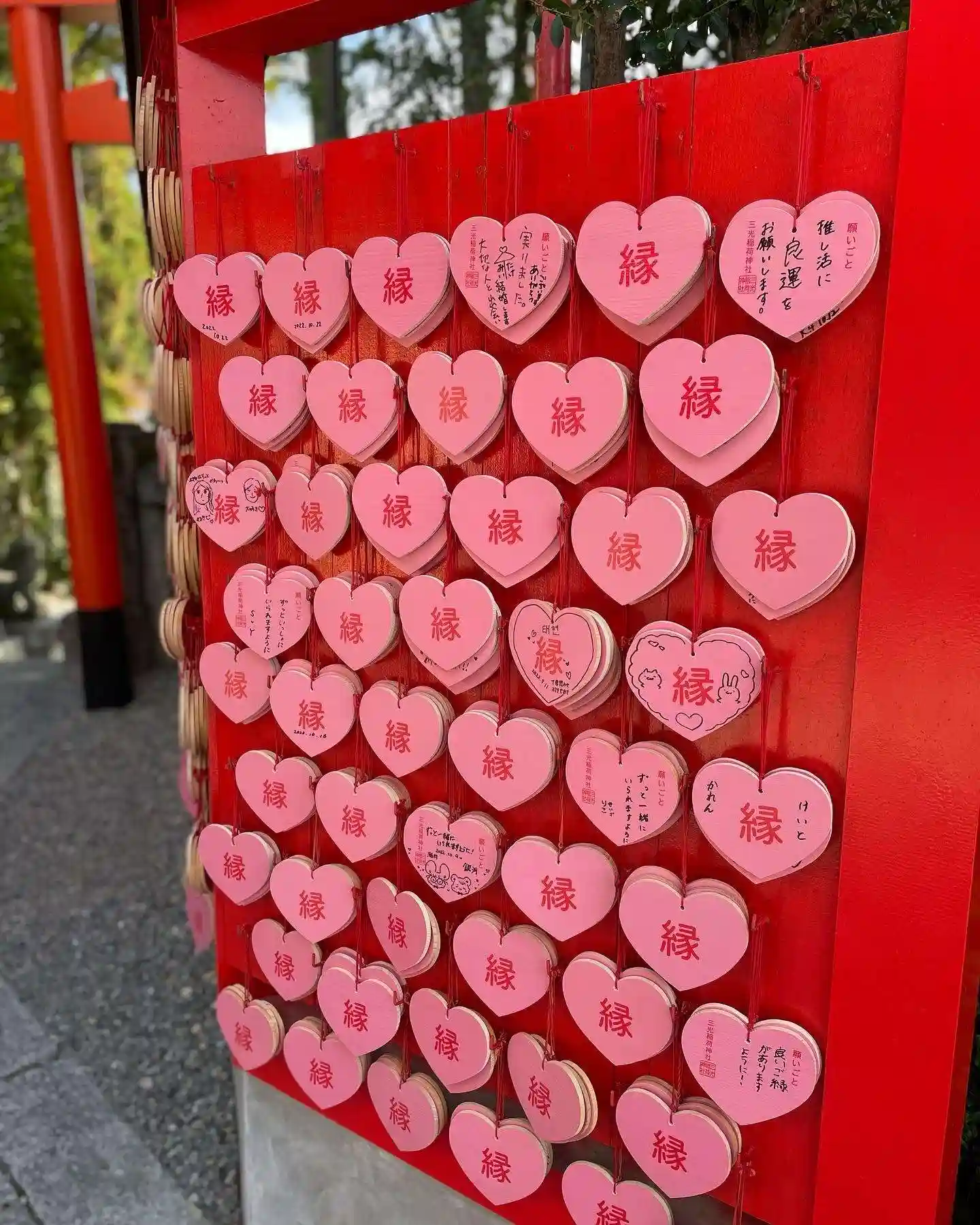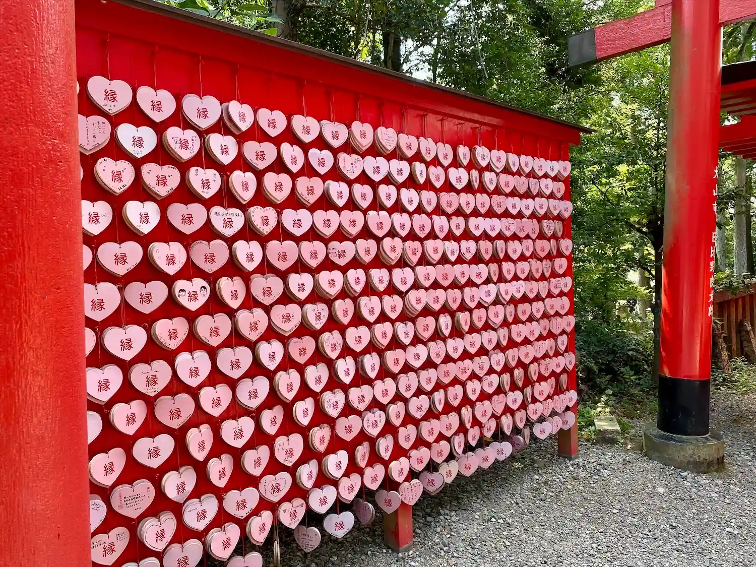 境内にはハート型の絵馬がたくさん😅