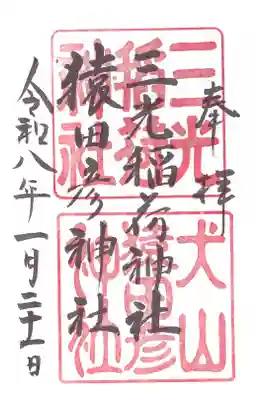 真ん中に三光稲荷神社と書かれ、三光稲荷神社の印、尾張国犬山丸之内の印が押されています。