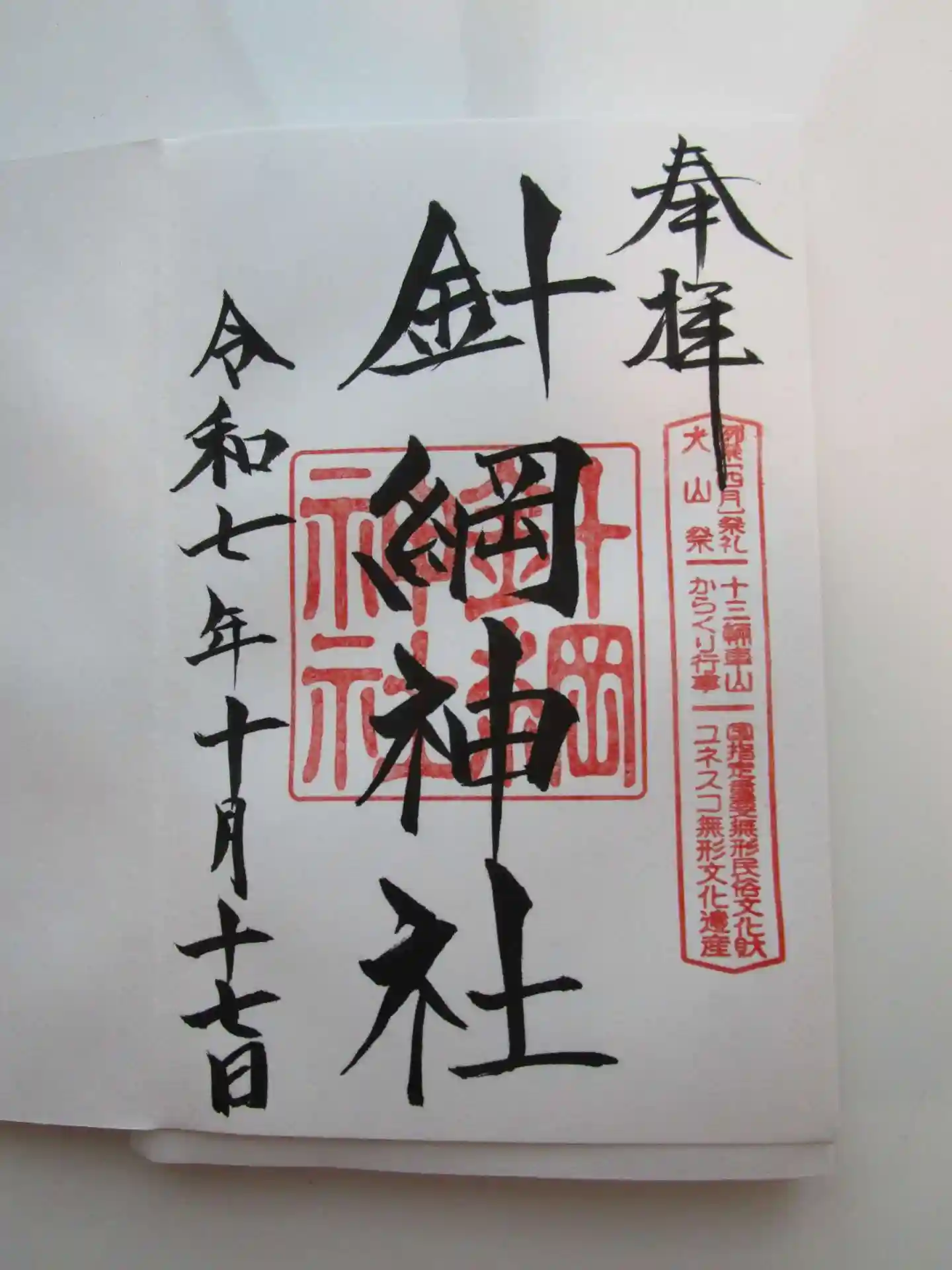 針綱神社さんの御朱印です。
