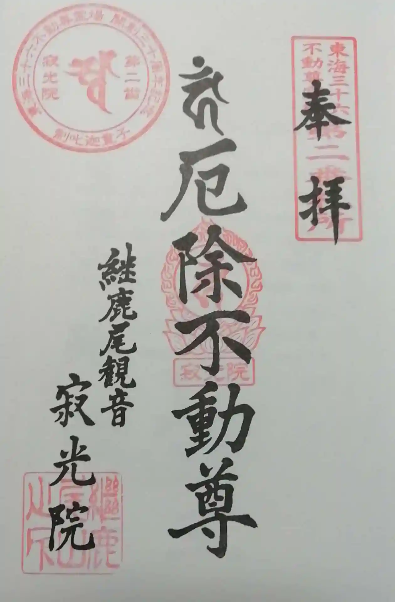 麓には薬医門があり、その奥に庫裡があります。そこで東海三十六不動尊霊場の納経帳に朱印を押印して戴きました。