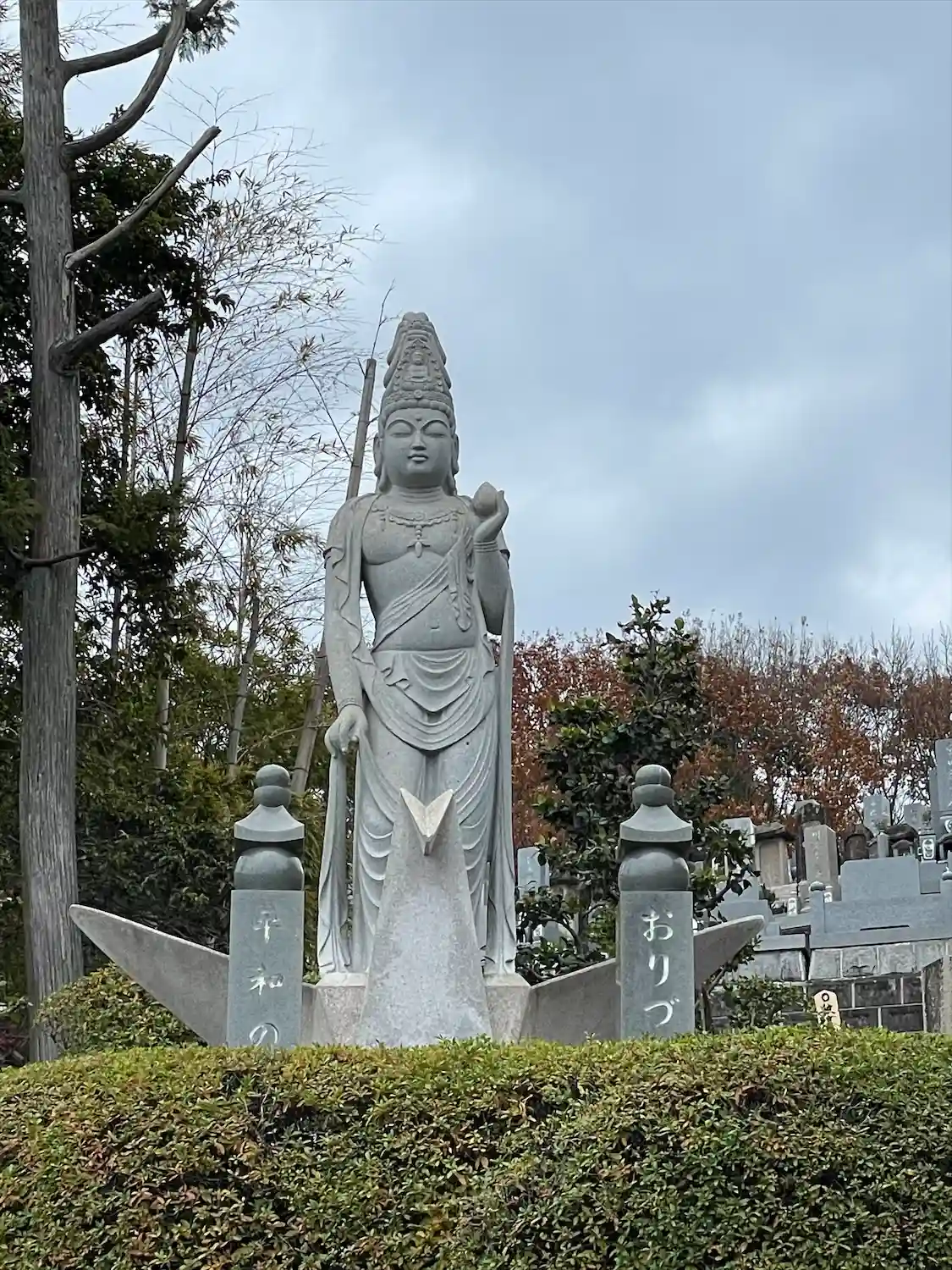 大きなおりづる観音様と境内…