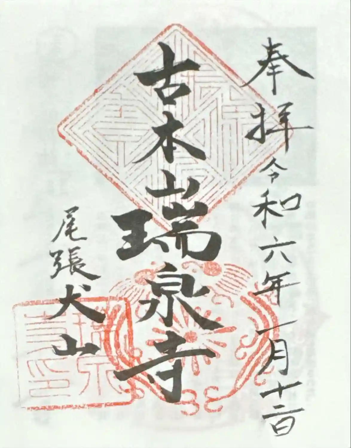 瑞泉寺の直書き御朱印です。