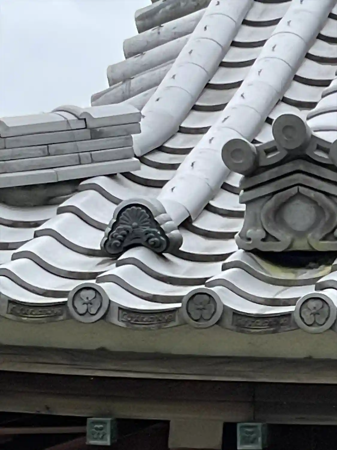 拝殿屋根には花と獅子。