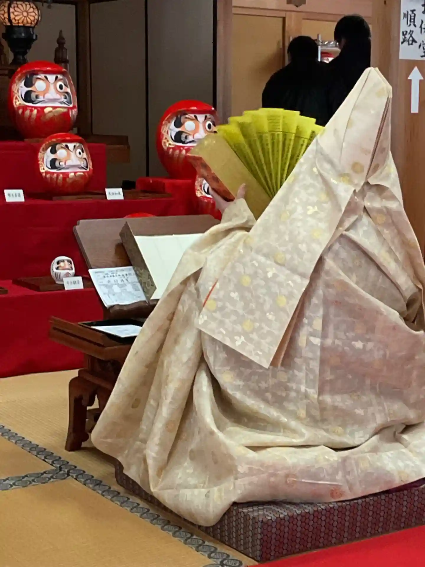 だるまさんの後方には祈祷されたお札が貼ってあります。