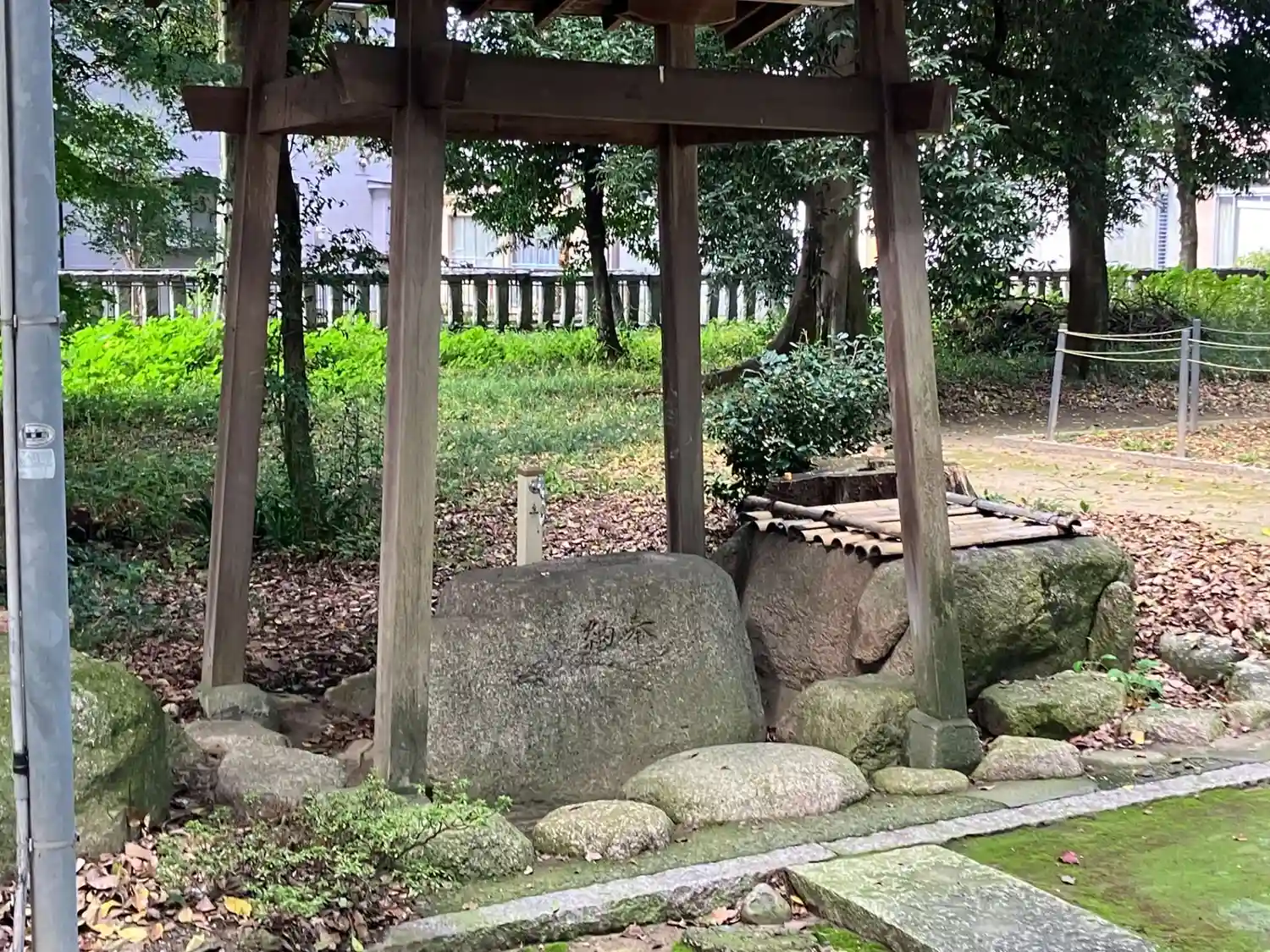 御所屋敷跡ハ現在ノ参道西南部一体デアル。