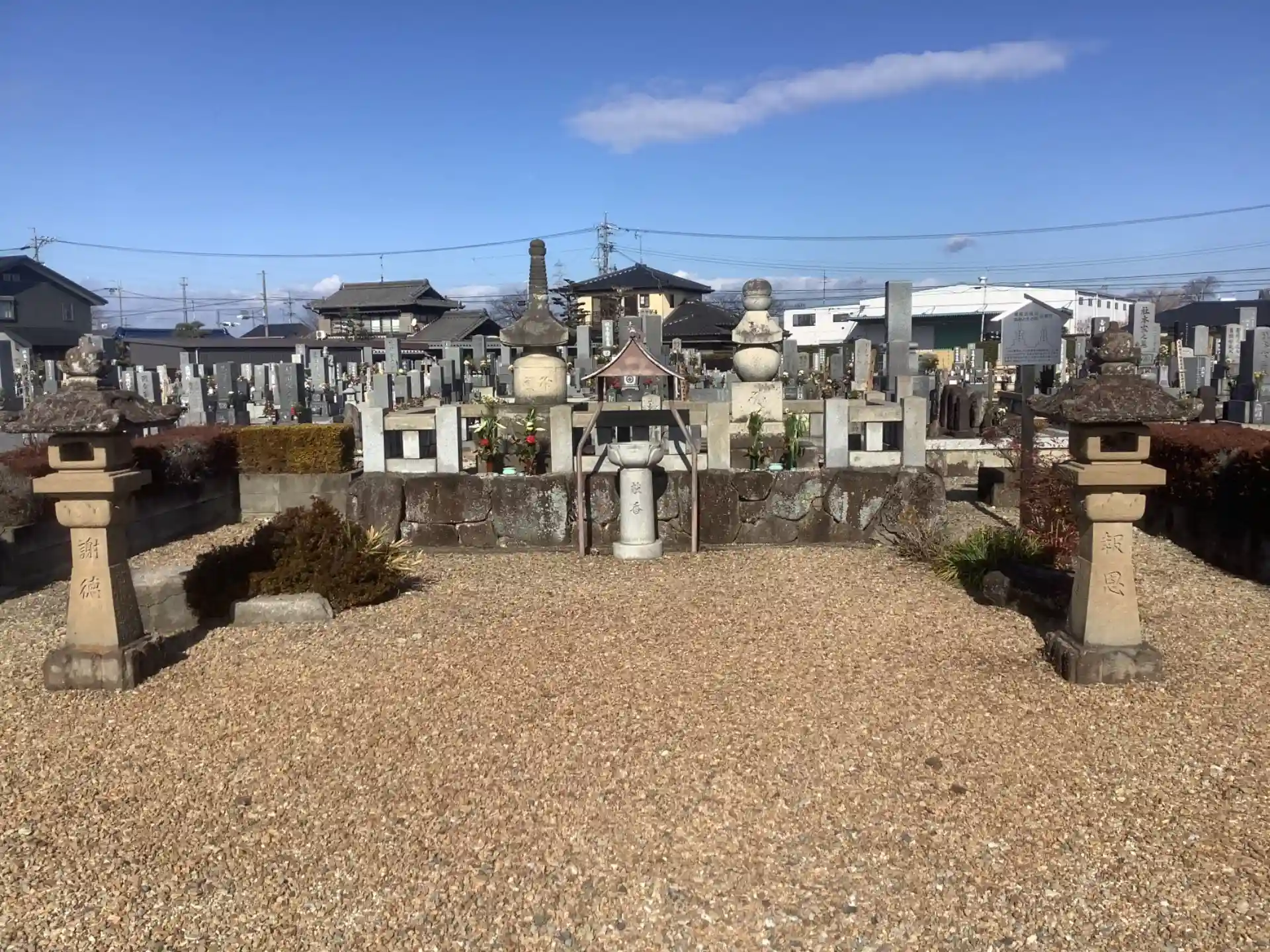 墓地の一角に、堀尾吉晴公、堀尾金助、御母堂の供養等があります。