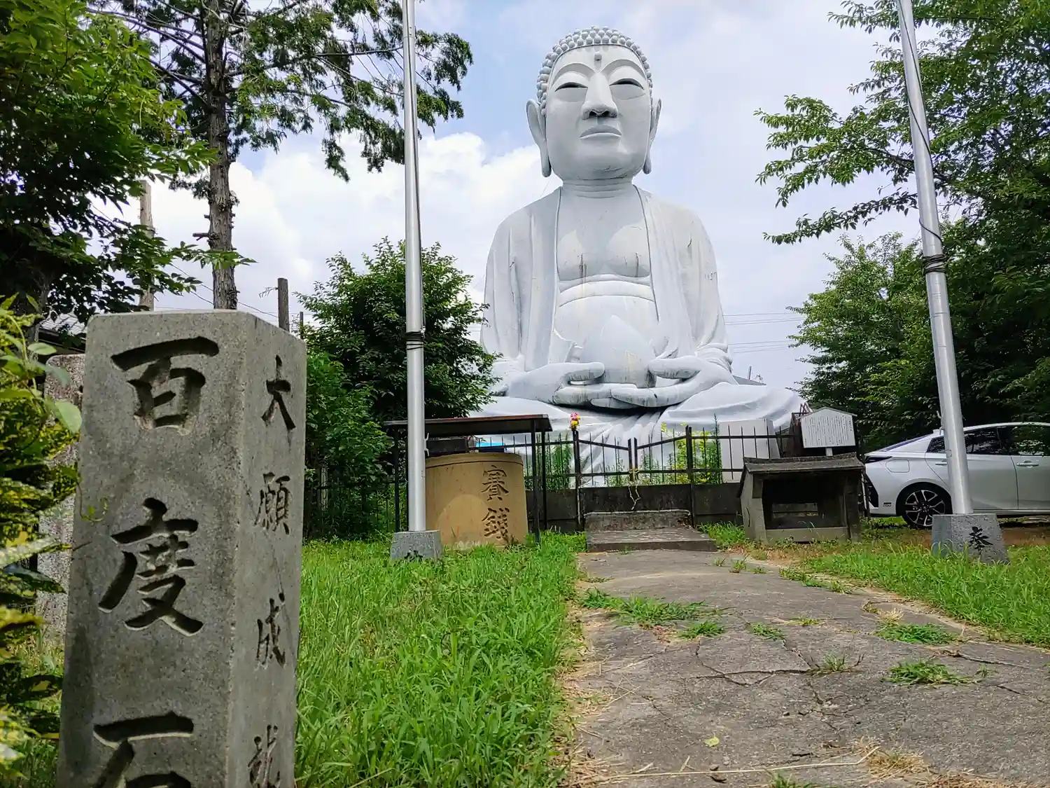 名鉄犬山線の車窓からも見ることができ、地元の人たちからは「布袋の大仏」として親しまれています。