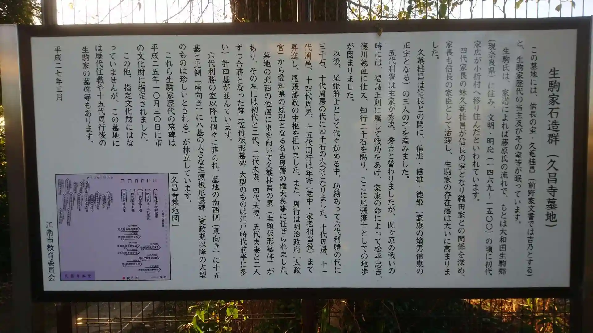 こちらは織田信長公が最も寵愛したといわれる「生駒の方 生駒吉野」の生まれた生駒家の墓碑があります!