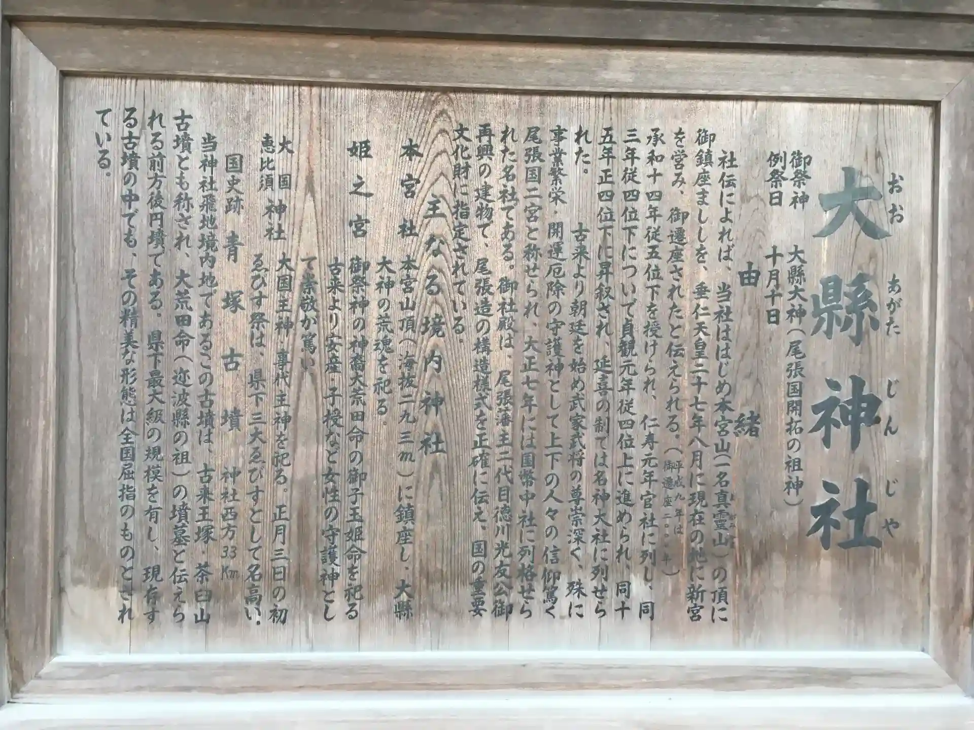 愛知県犬山市にございます大縣(おおあがた)神社です。御祭神は大縣大神。尾張国二宮です。犬山の有名な寺社は北部の方に集中するのですが、こちらは南部に鎮座されております。