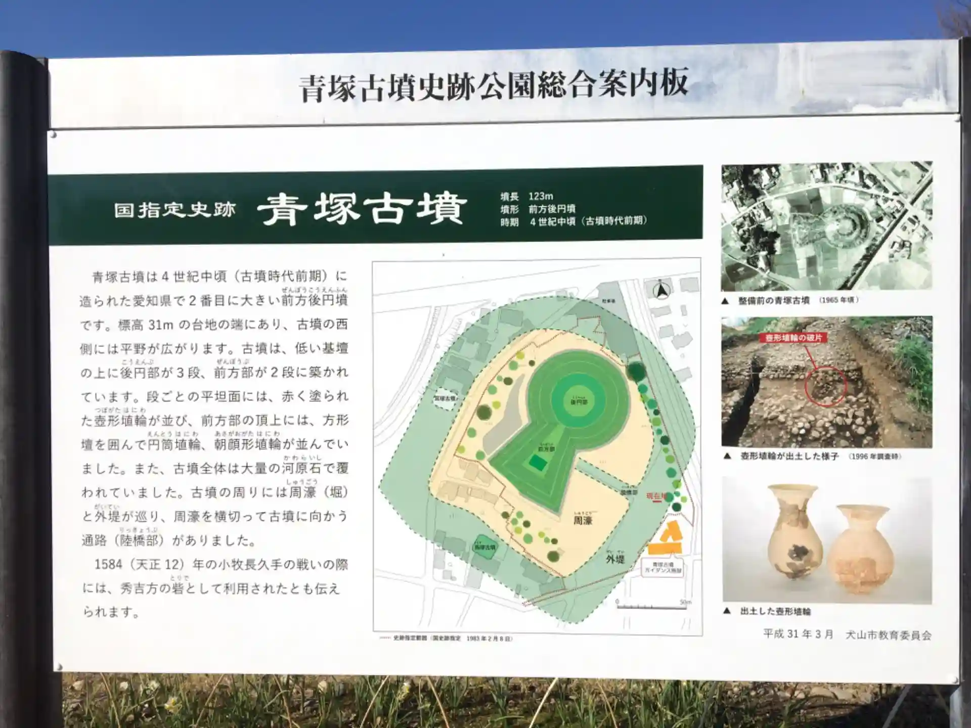 尾張二の宮 大縣神社にお参りさせて頂きました。犬山市内にある青塚古墳が、大縣神社御祭神の神裔大荒田命(おおあらたのみこと)の墳墓と伝えられていると知り、今回はそちらにも寄らせて頂きました。