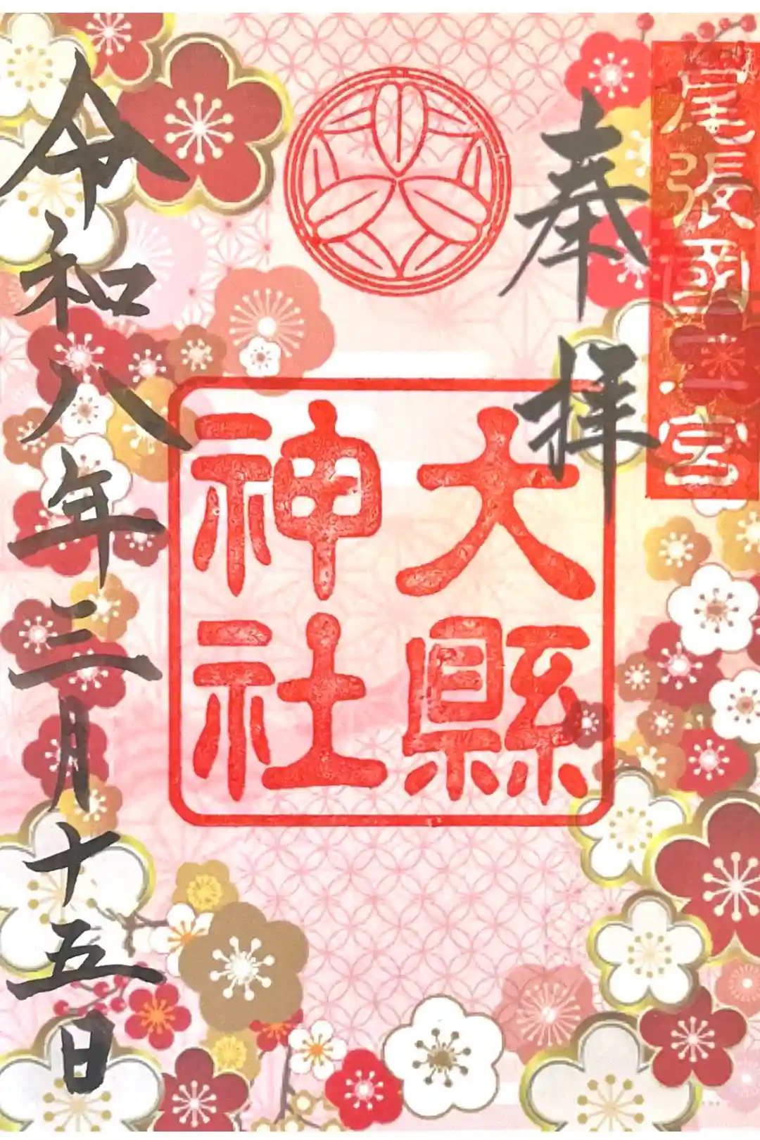 大縣神社さんの巫女さんたちのデザインだそうです。毎月綺麗ですよ😆書置き御朱印です。