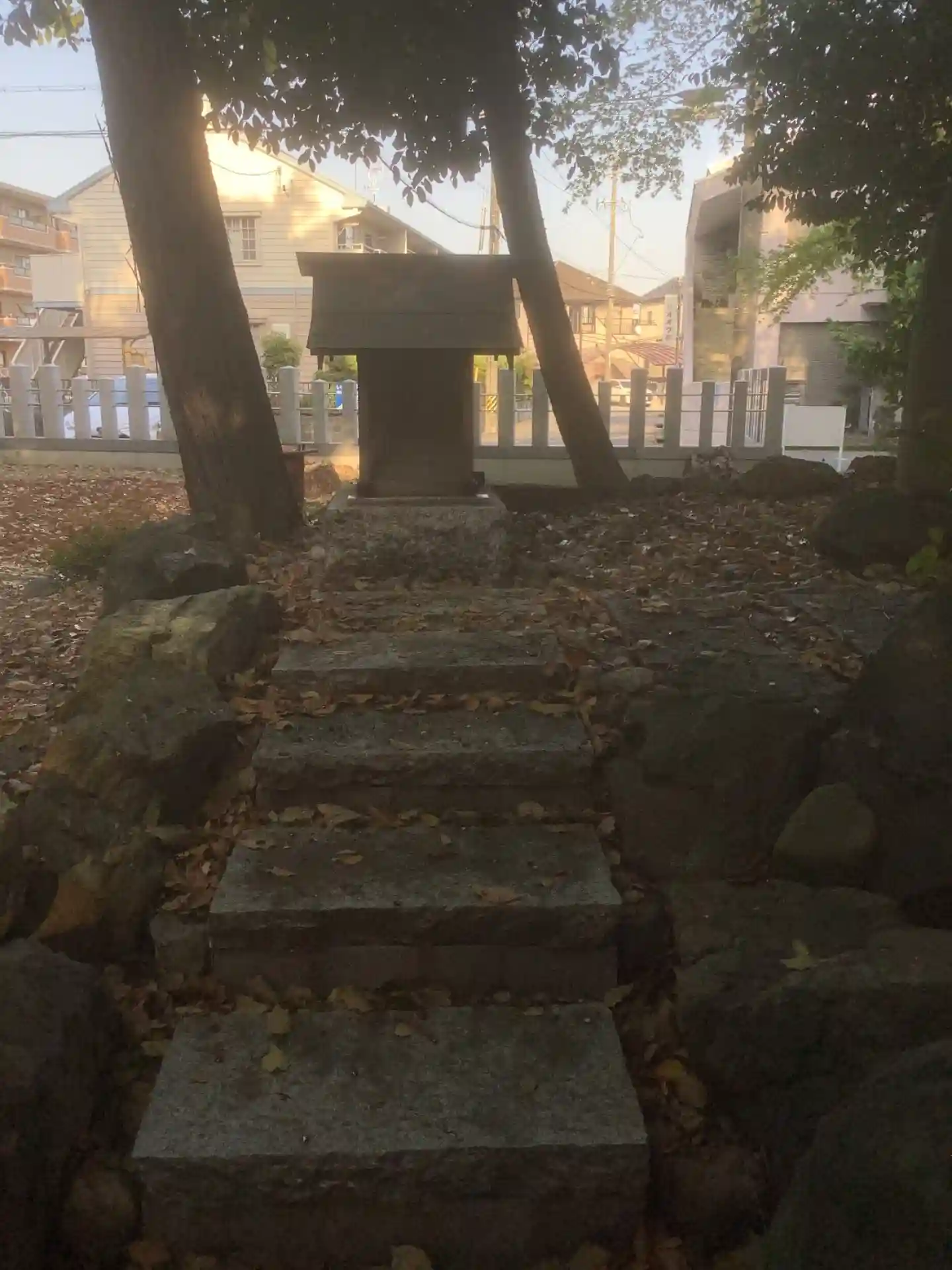周辺は開発されてきたところなので、神社の境内だけ木々が繁っているので、社殿は見えなくても場所はわか…