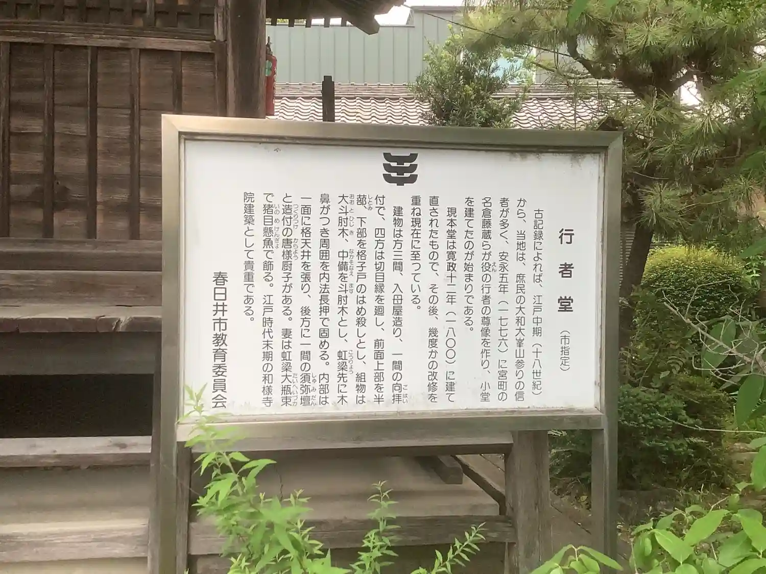 行者堂明細書によれば安永から天明年間(1772~1780)にかけて大峯山(大和国吉野郡)に祈願参拝する者が多く、宮町の名倉藤蔵は天明6年(1786)正月御本尊役行者神変大菩薩を行者堂を建立し、奉安した。