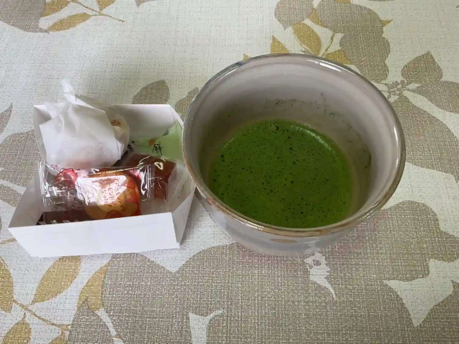 お接待のお抹茶とお菓子、塩味も甘味もあって助かる😅