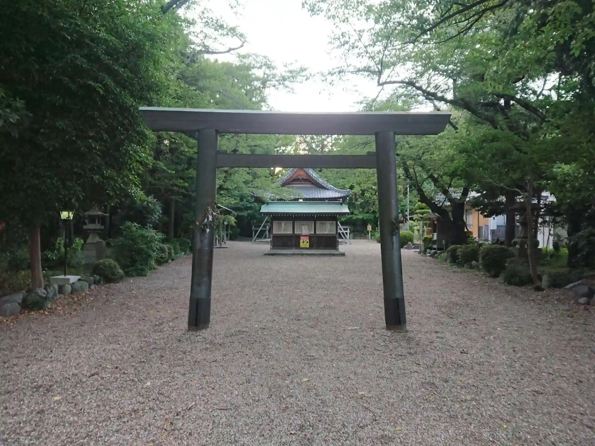 鳥居から石灯籠の参道を進んだ先に社殿があります。こちらには蕃塀がありました。