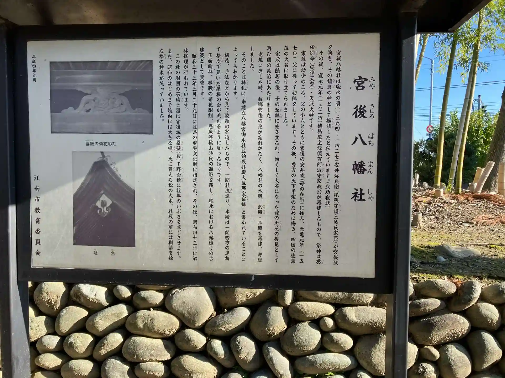 宮後八幡社(ミヤウシロハチマンシャ)に参拝させてもらいました。 徳島藩主であった蜂須賀家政の生誕の地が近くに在り、1624年に家政が再建した事がわかっています。 神領は狭いくコンパクトな神社です。 駐車場は線路側に、大興山秋葉禅寺との共同で数台分在ります