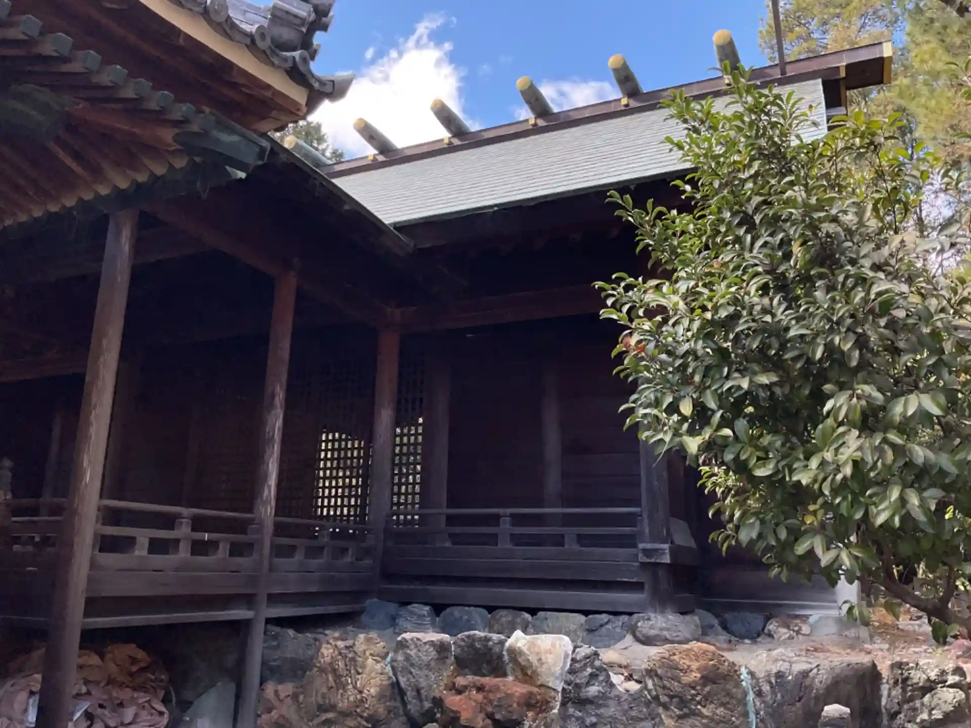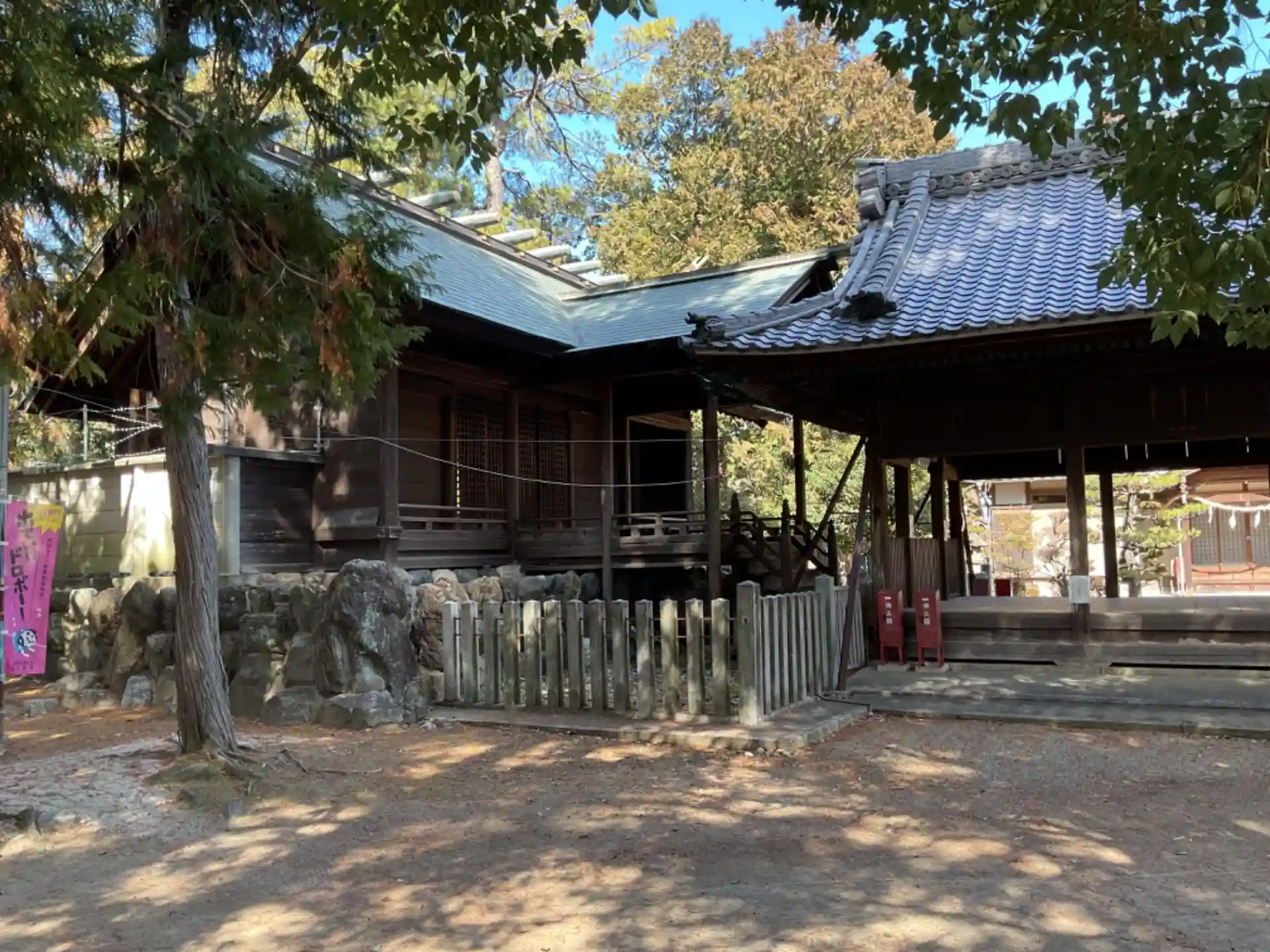 蕃塀の後ろに立っても広い神社