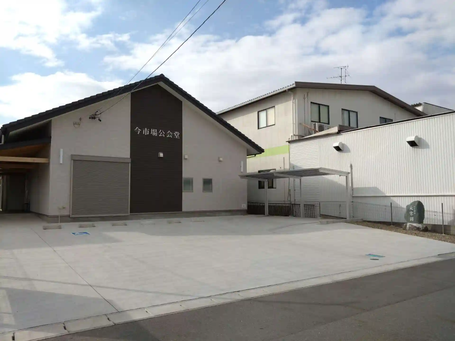 今市場公会堂の前に石碑があります。