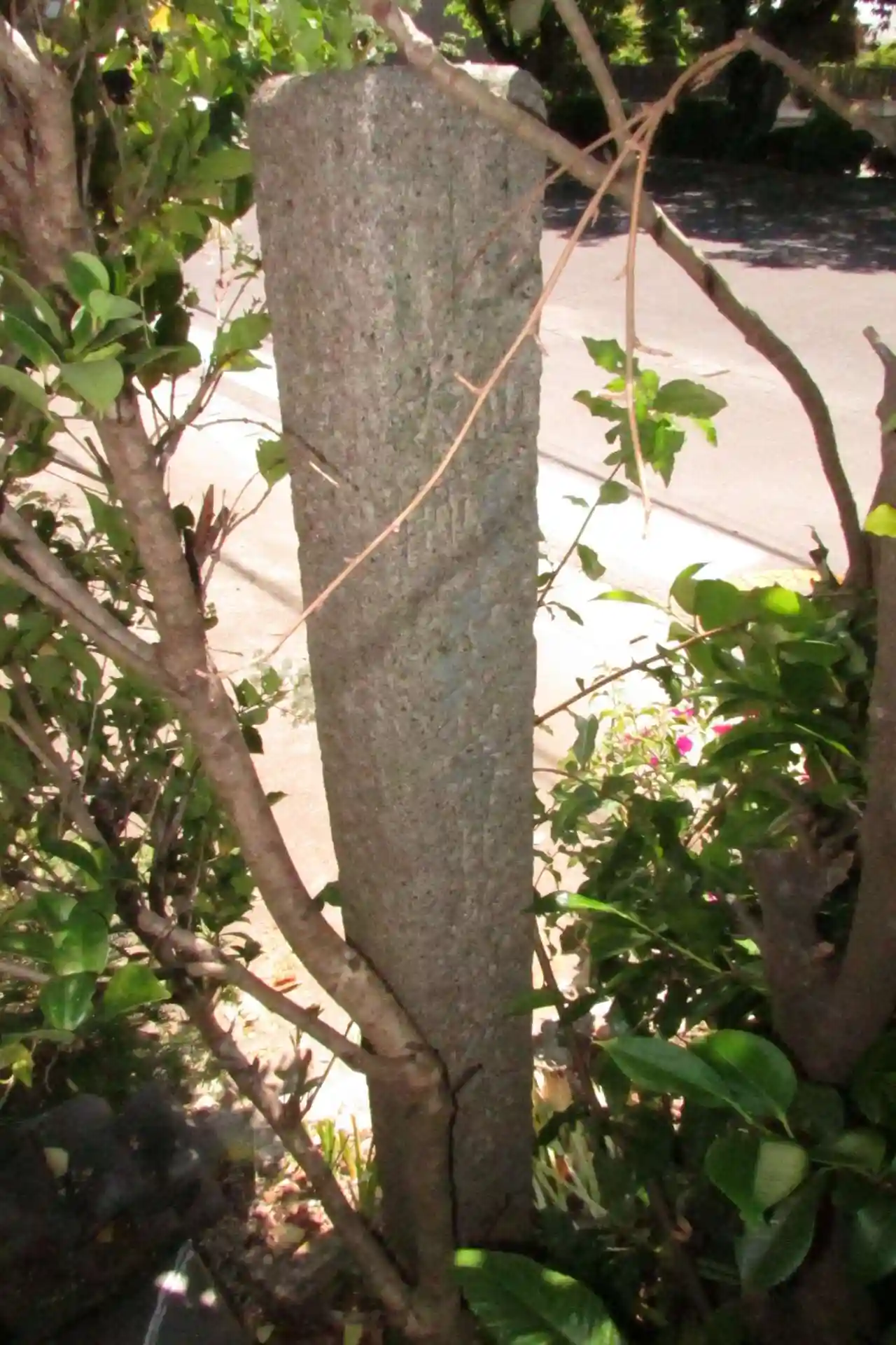 大應山 恵林寺→阿弥陀堂→左側に石柱が裏向きで建立。住職談:阿弥陀堂に弘法大師が安置されているため阿弥陀様に気を使い裏向きに設置