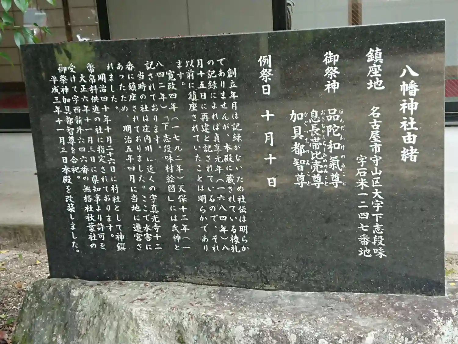 | ご祭神 | 《主》品陀和気命,《配》加具都智命 | |