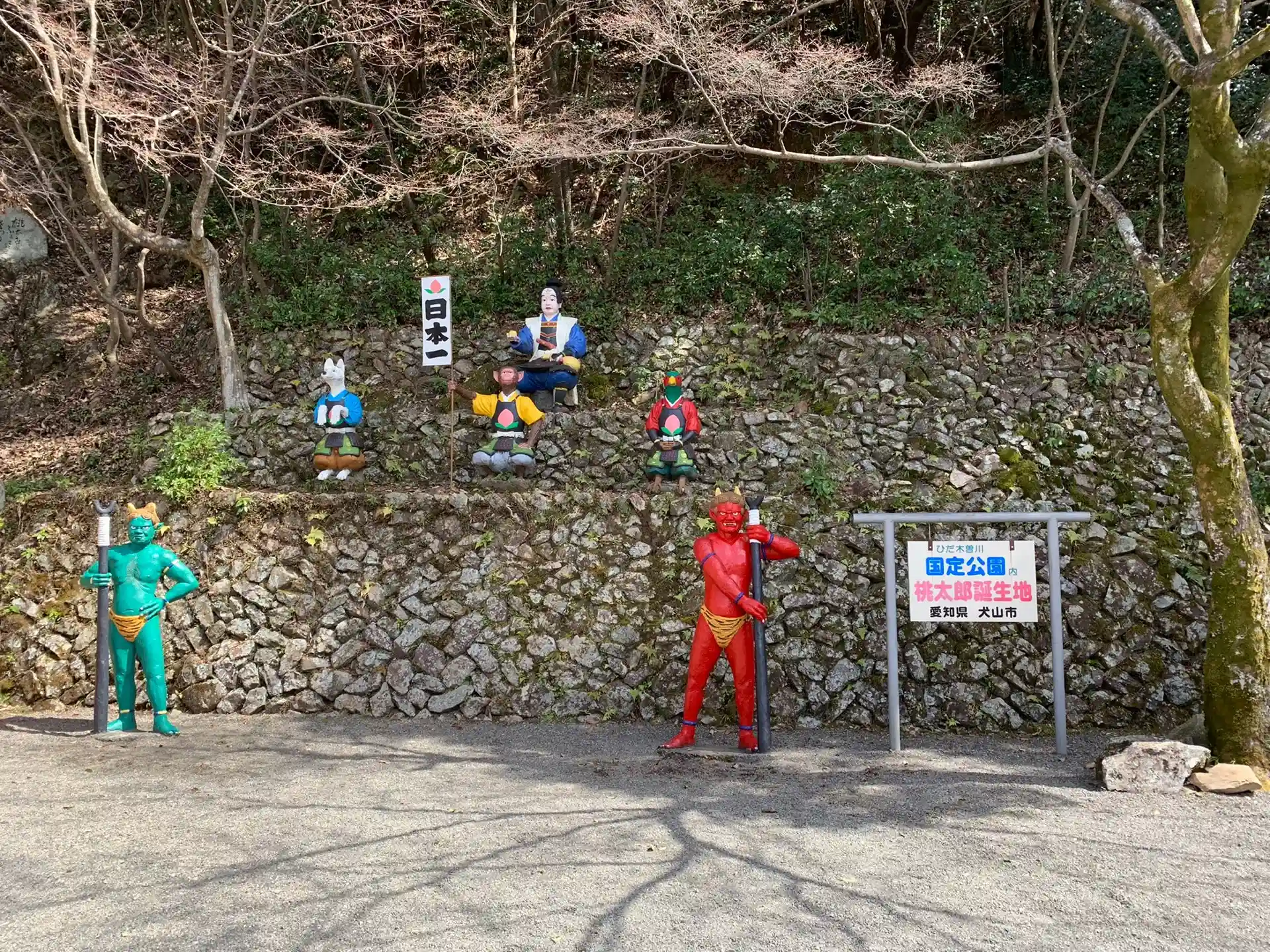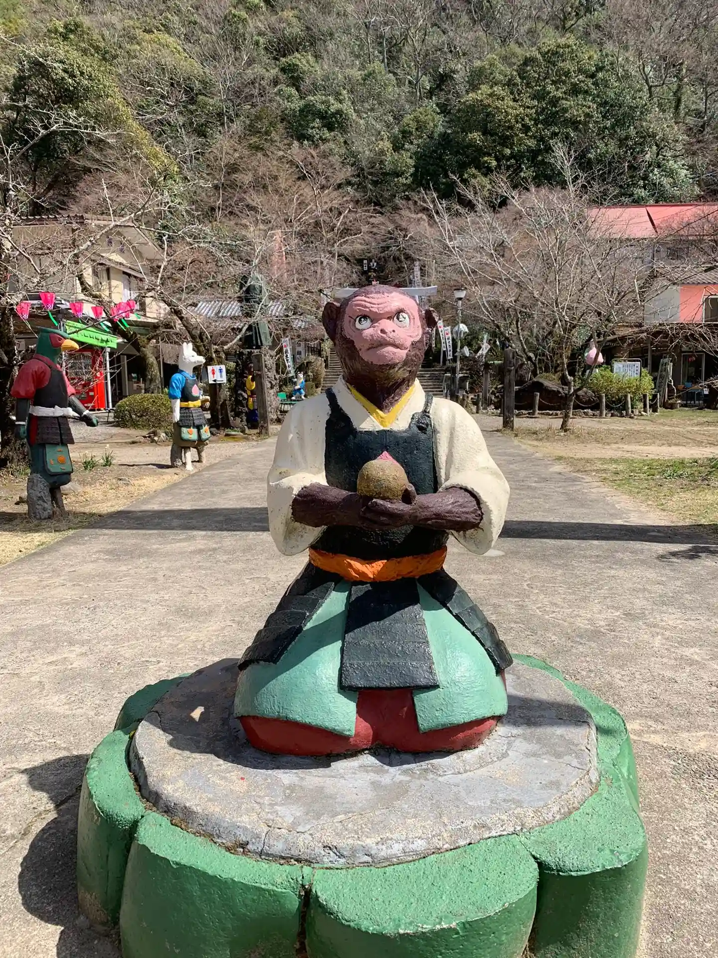 ニノ鳥居の前には、桃から生まれた桃太郎!