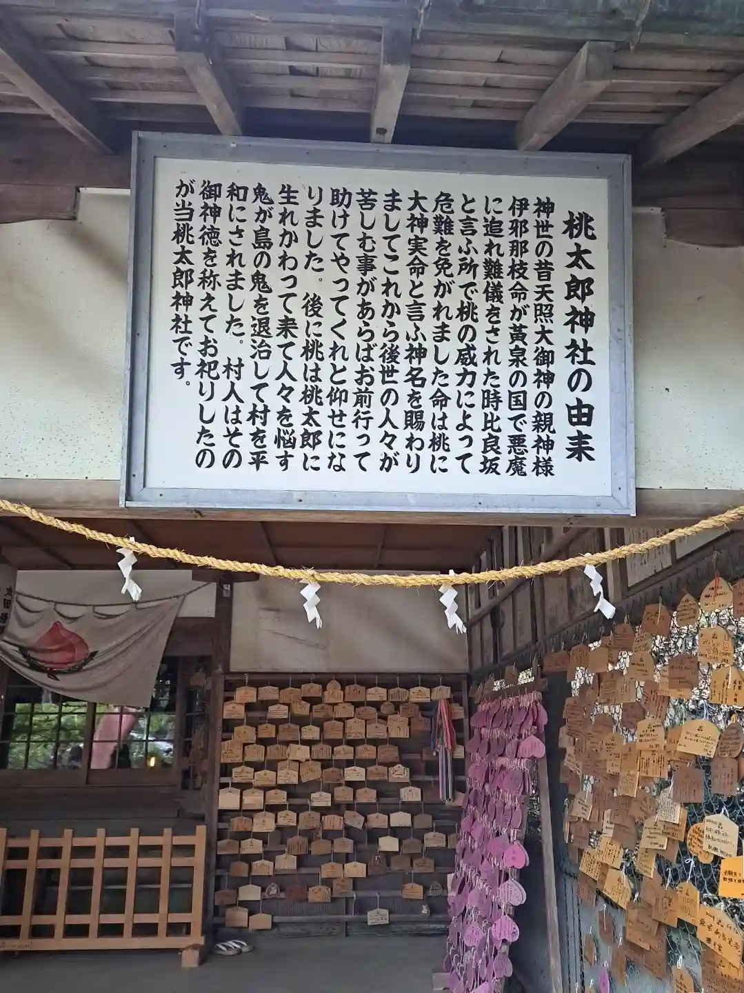 ピーチ型の絵馬が一杯掛けてありました。ご利益は小授かり、安産、子供の発育などです。