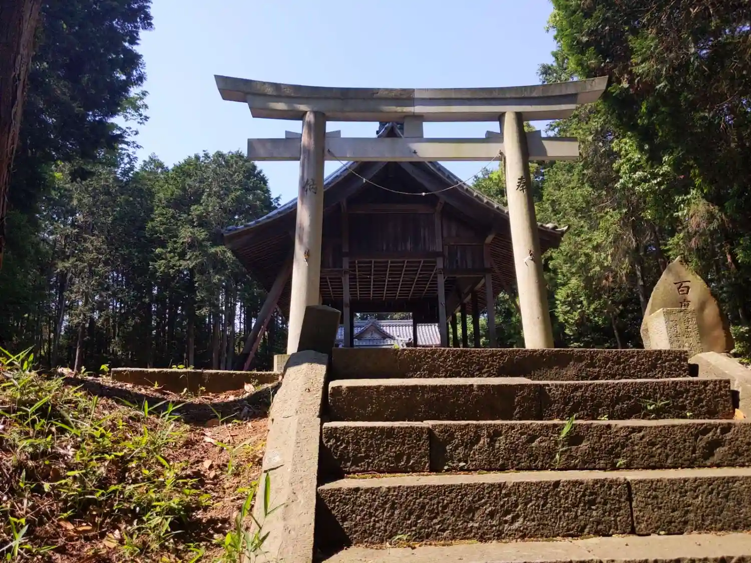 周りが木々に囲まれているため、奥の社殿はよくわかりません。