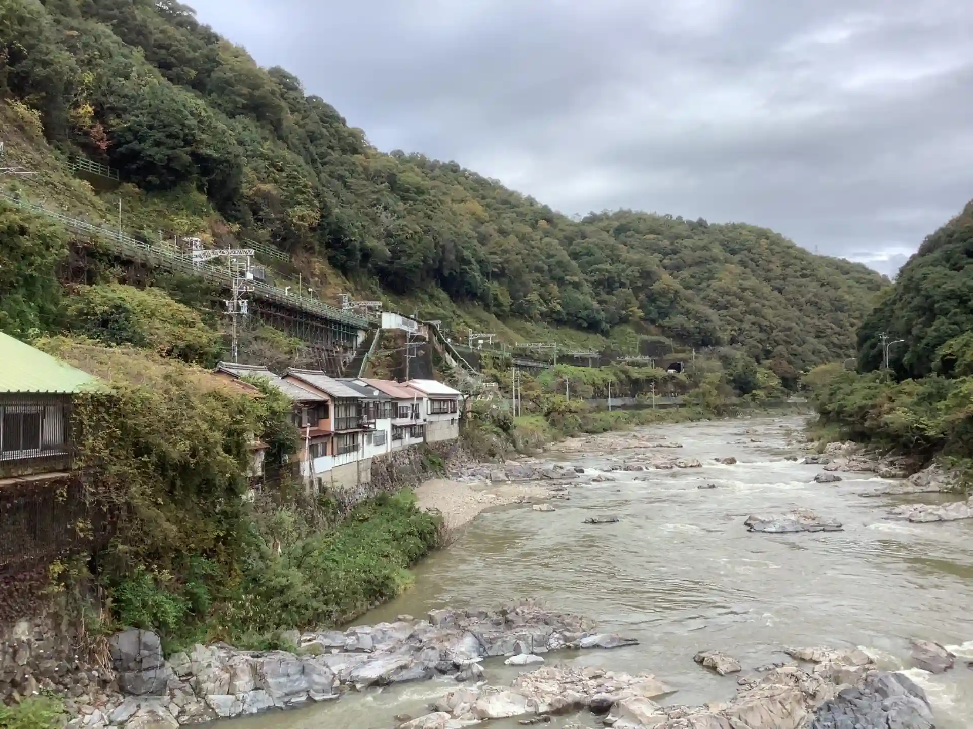 午前中までに降った雨の影響で川は増水しています。