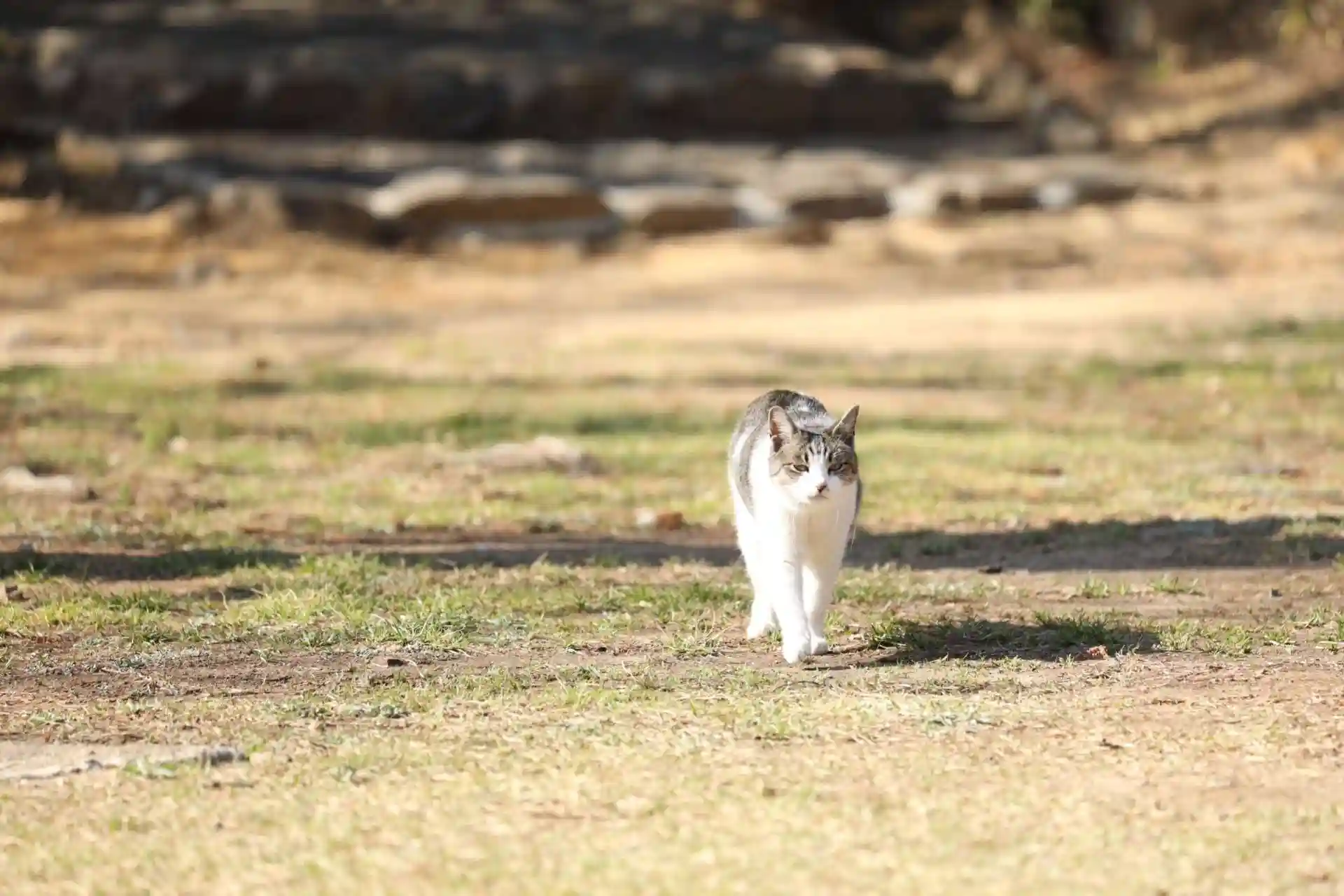 皆でご飯を食べる時、一歩離れたところから他の猫が食べる所を暖かく見守り、一通り終わったところで自分も食べ始めます。