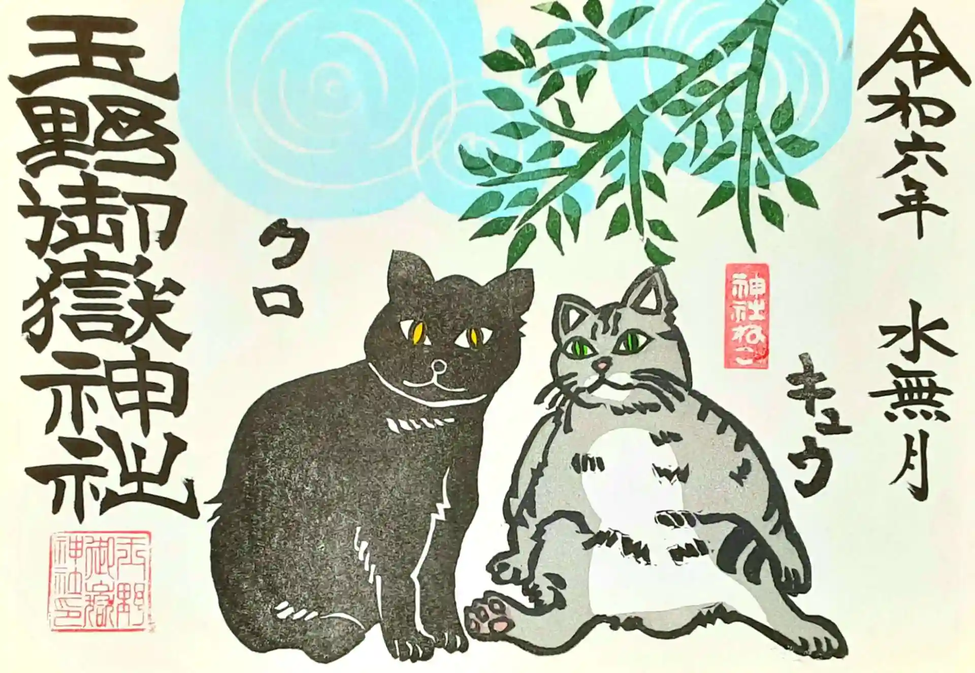 6月月替わり 神社ねこ 御朱印が出来ました。