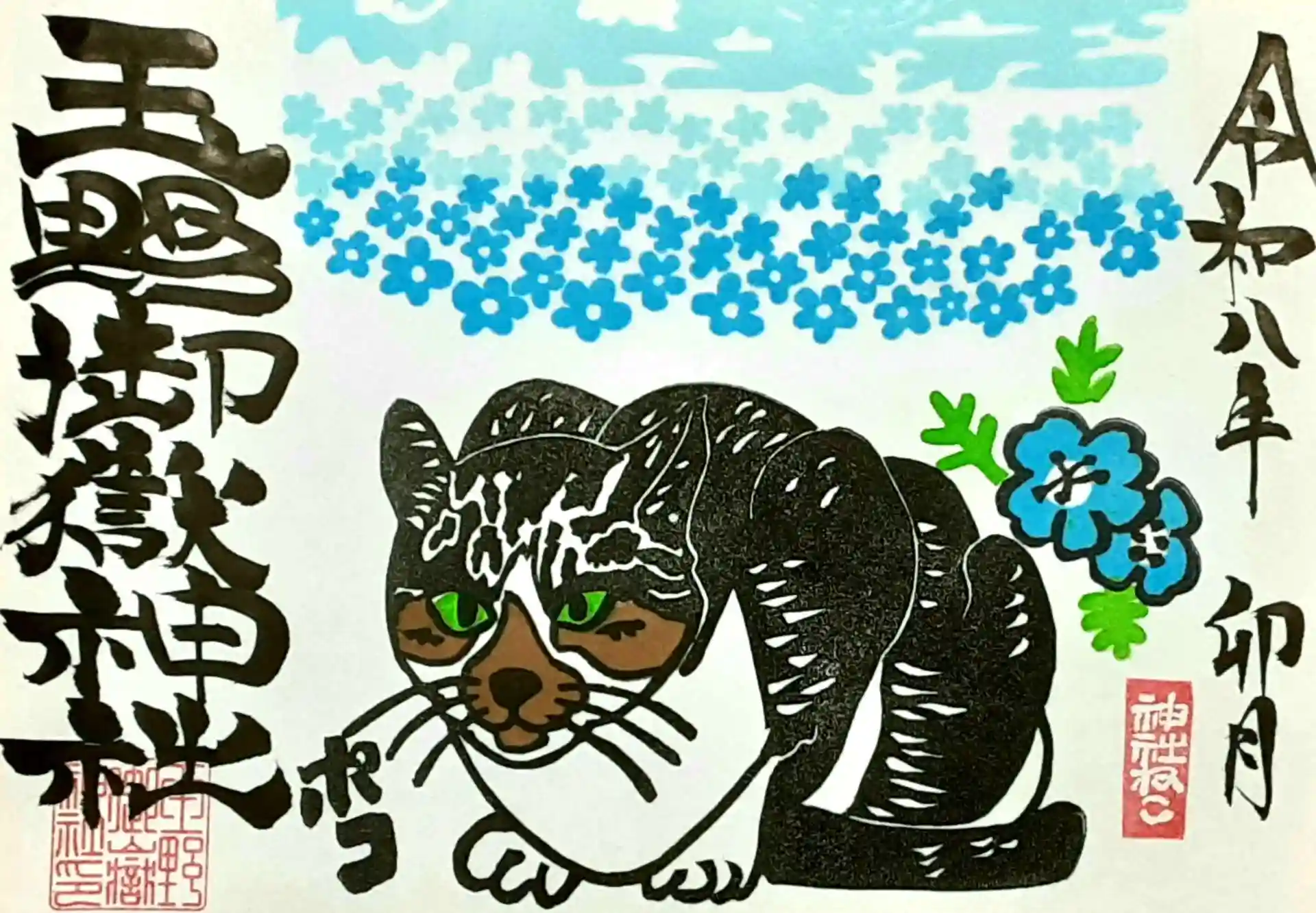 4月月替わり 神社ねこ 御朱印が出来ました。