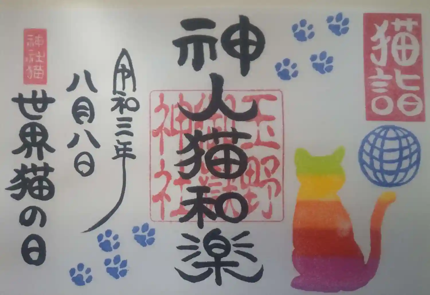 8月の月替わりと世界猫の日の御朱印を頂きました🙏月替わりの猫は神社にいる猫がモデルで、猫も月で変わるそうです。
