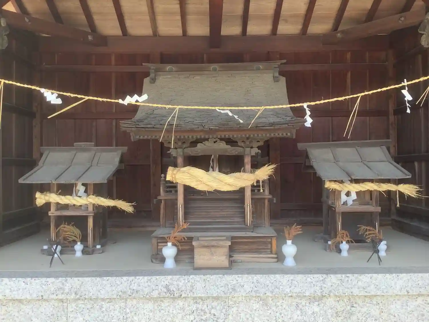 中央が天王社、左が厳島社、右が秋葉社です。
