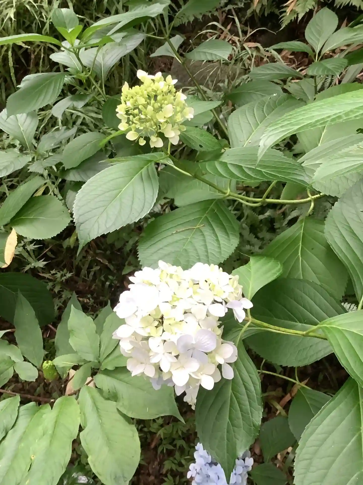 季節に花の紫陽花、ここではまだ咲き始め