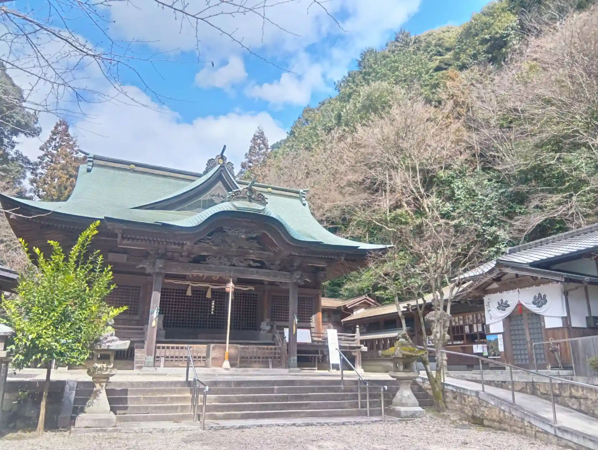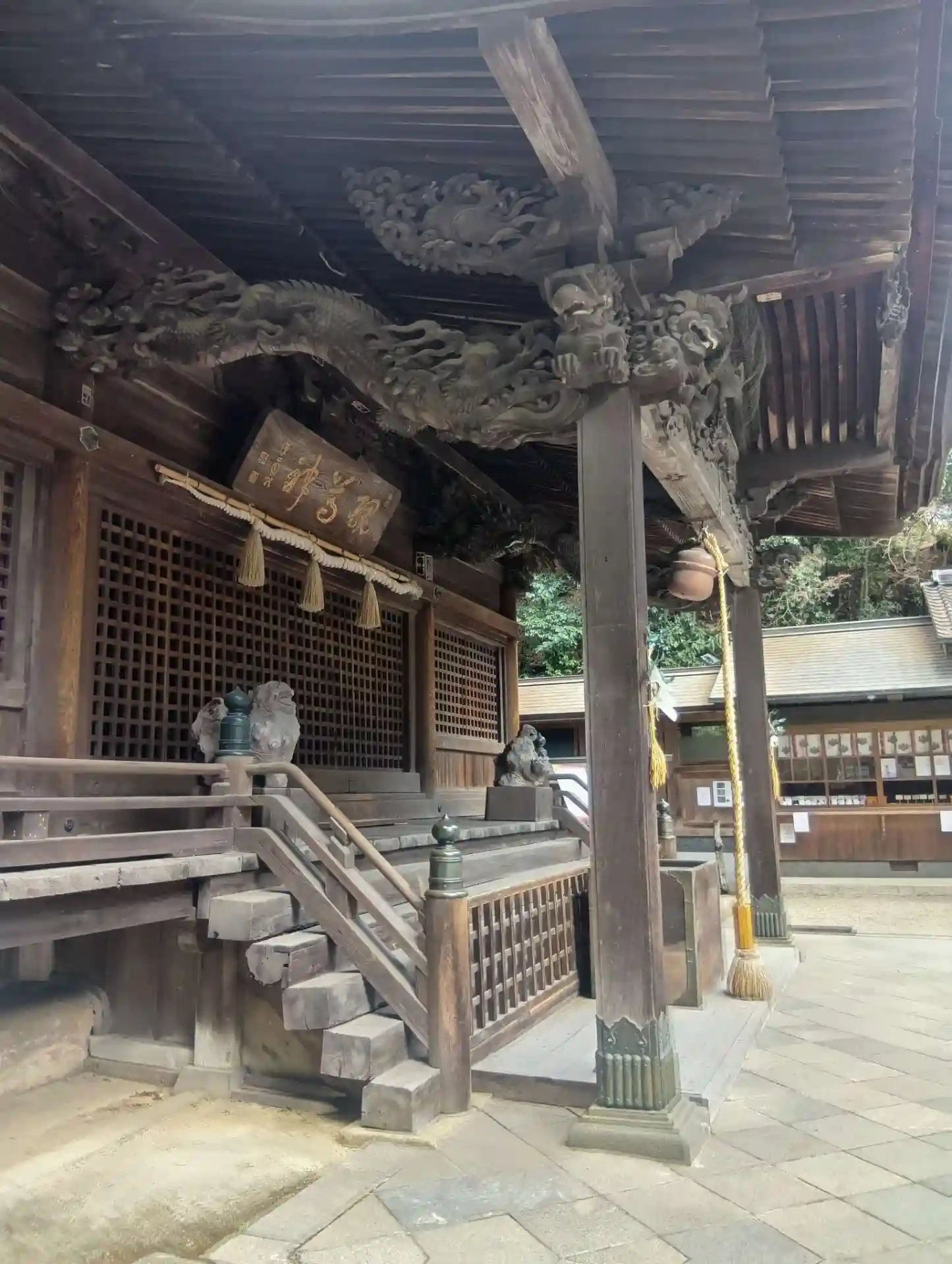 愛知県春日井市内津町に鎮座する「内々神社」(うつつじんじゃ)を初参拝させていただきました。主祭神は尾張氏の祖建稲種命(たけいなだねのみこと)であり、これに日本武尊、宮簀姫命(みやずひめのみこと)を配しています。権現造りの社殿は、江戸末期・名工立川一族により造られ、廻遊式林泉型の庭園は、夢窓国師作といわれています。素晴らしい彫刻と御神殿の裏にある庭園、そのさらに奥にある「奥の院」が有名です。拝殿の前にある狛犬さんが木製でした。また、サルスベリと松が一緒になった「すべらずの松」があり、受験生の絵馬がたくさん掛かっていました。奥の院を目指し、案内に沿って山道を進みましたが、途中で案内を見つけられず行き止まりに…、たどり着く事ができませんでした。展望台への案内もありました。庭園の奥は、苔の生えた大きな岩がたくさんあり、静かで少し薄暗くとても神秘的でした。次回は是非、奥の院までたどり着きたいです。御朱印は日曜日・祝日の9:00〜15:00のみいただけるようです。境内の西側に駐車場があります(15台分ほど)。