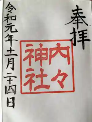 ![内々神社の御朱印]()