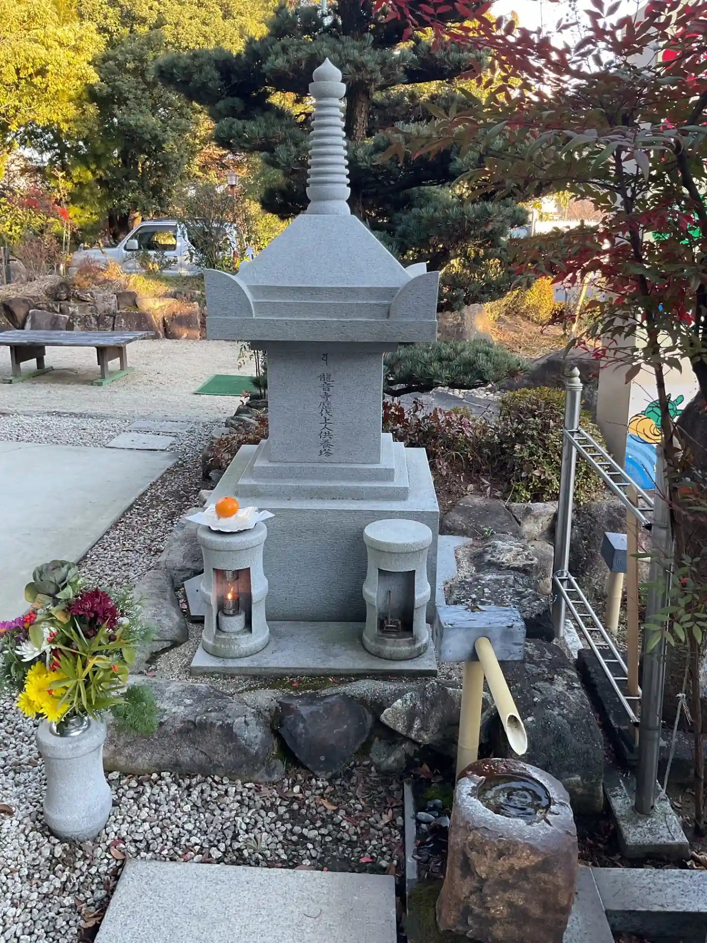 奥の小さな塔は、歴代住職の墓です。