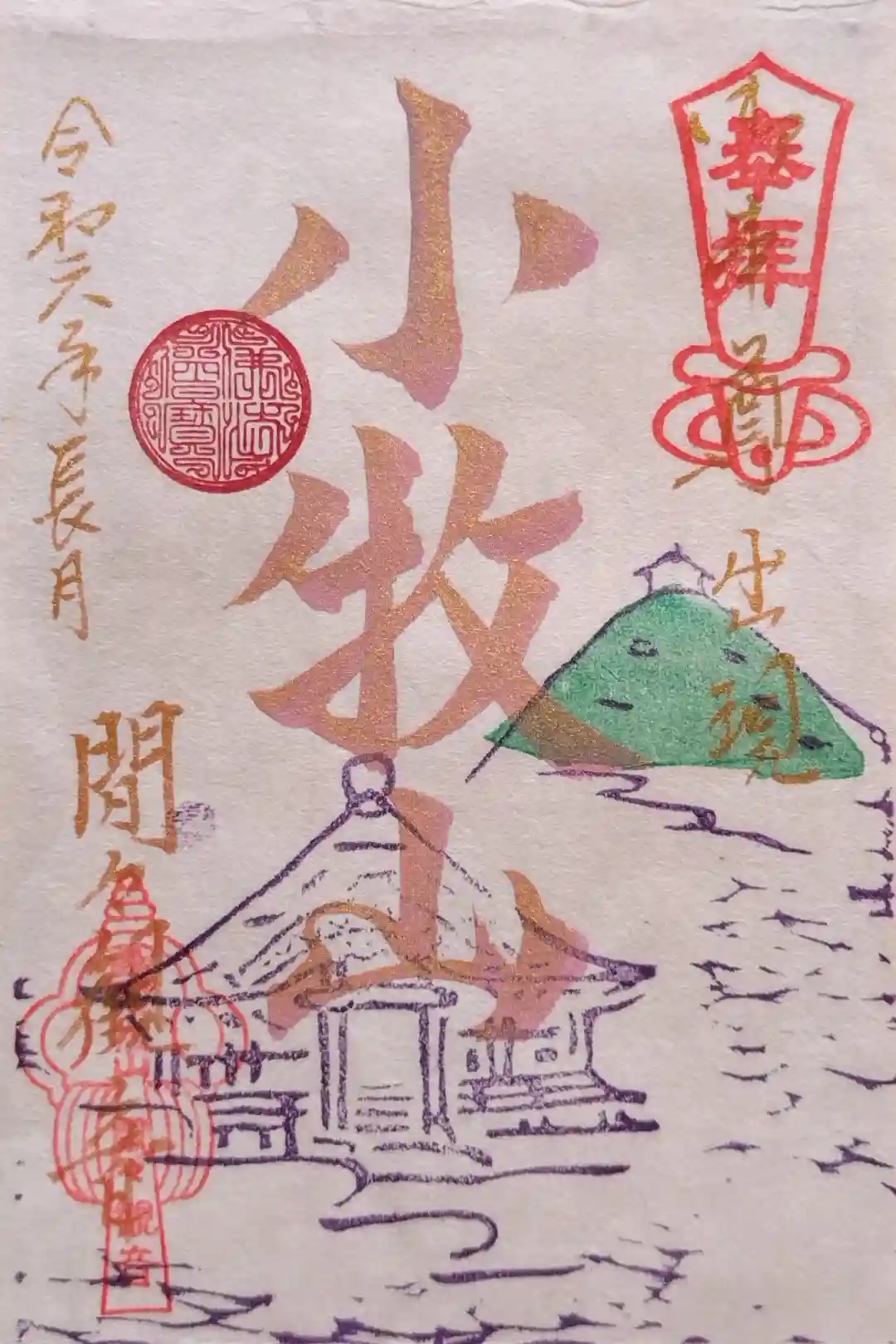 令和6年9月の特別紙御朱印(書置き)。御本尊(間々観世音菩薩)出現小牧山の御朱印。