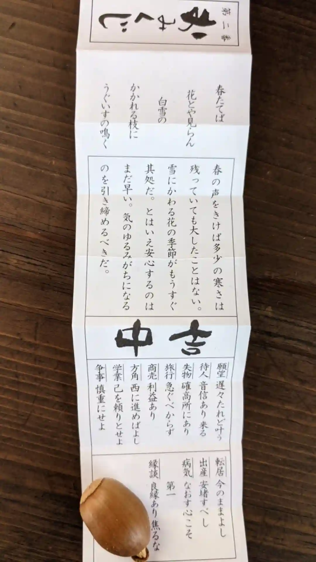 今日引いた御神籤は中吉でした