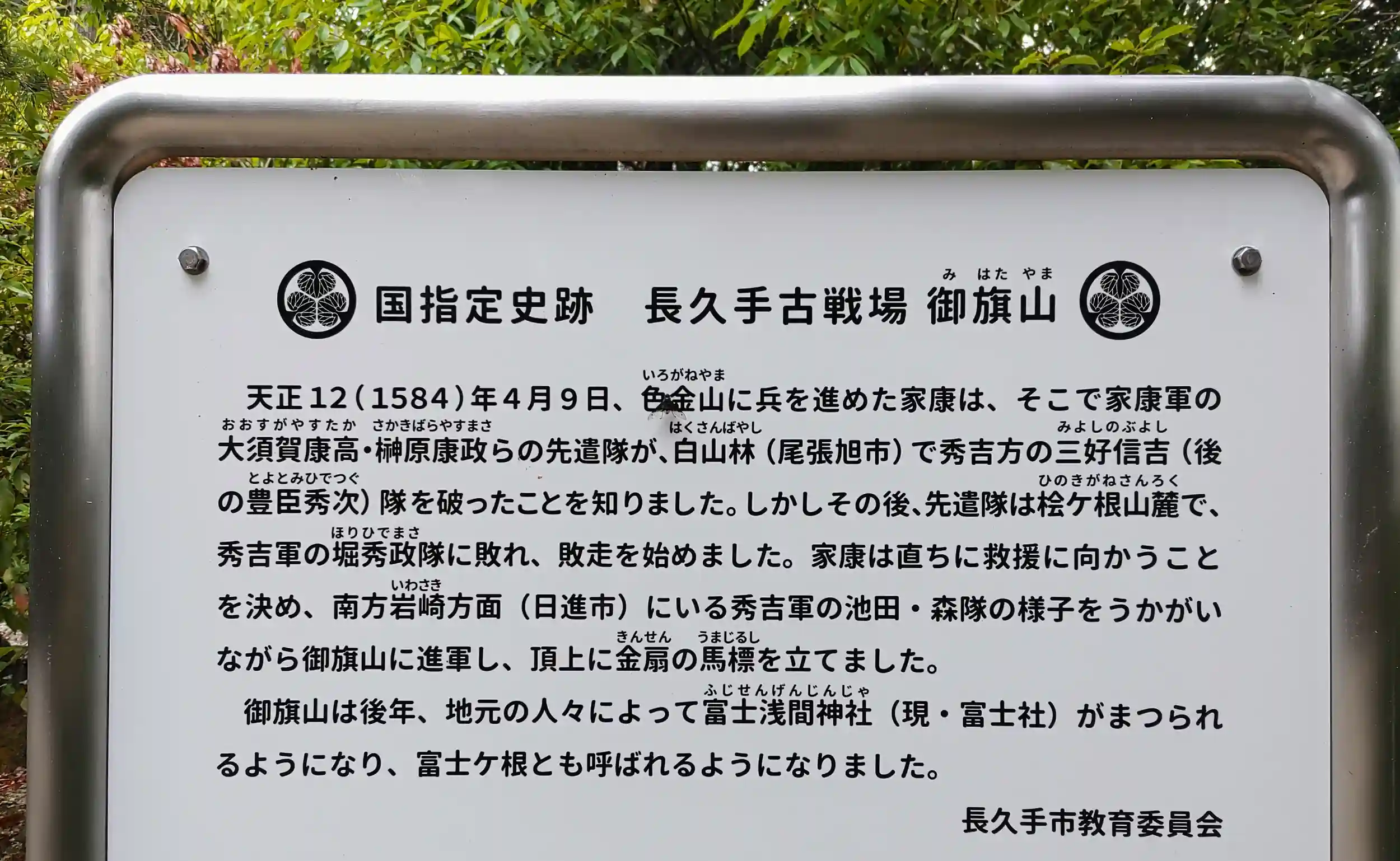 長久手の合戦で家康さんが金扇の馬印を立てた所でもあるそうな。
