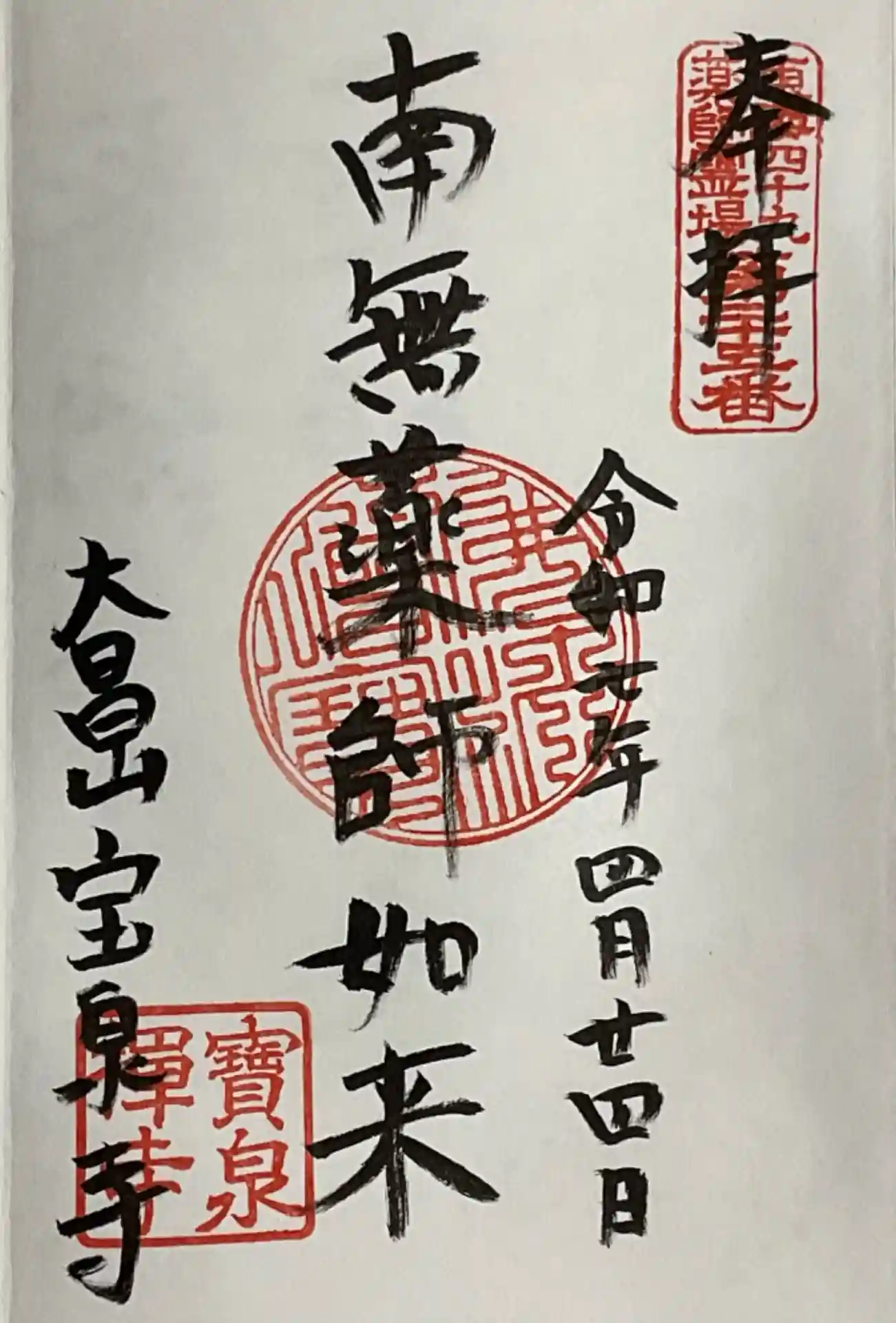 お薬師さんの直書き御朱印