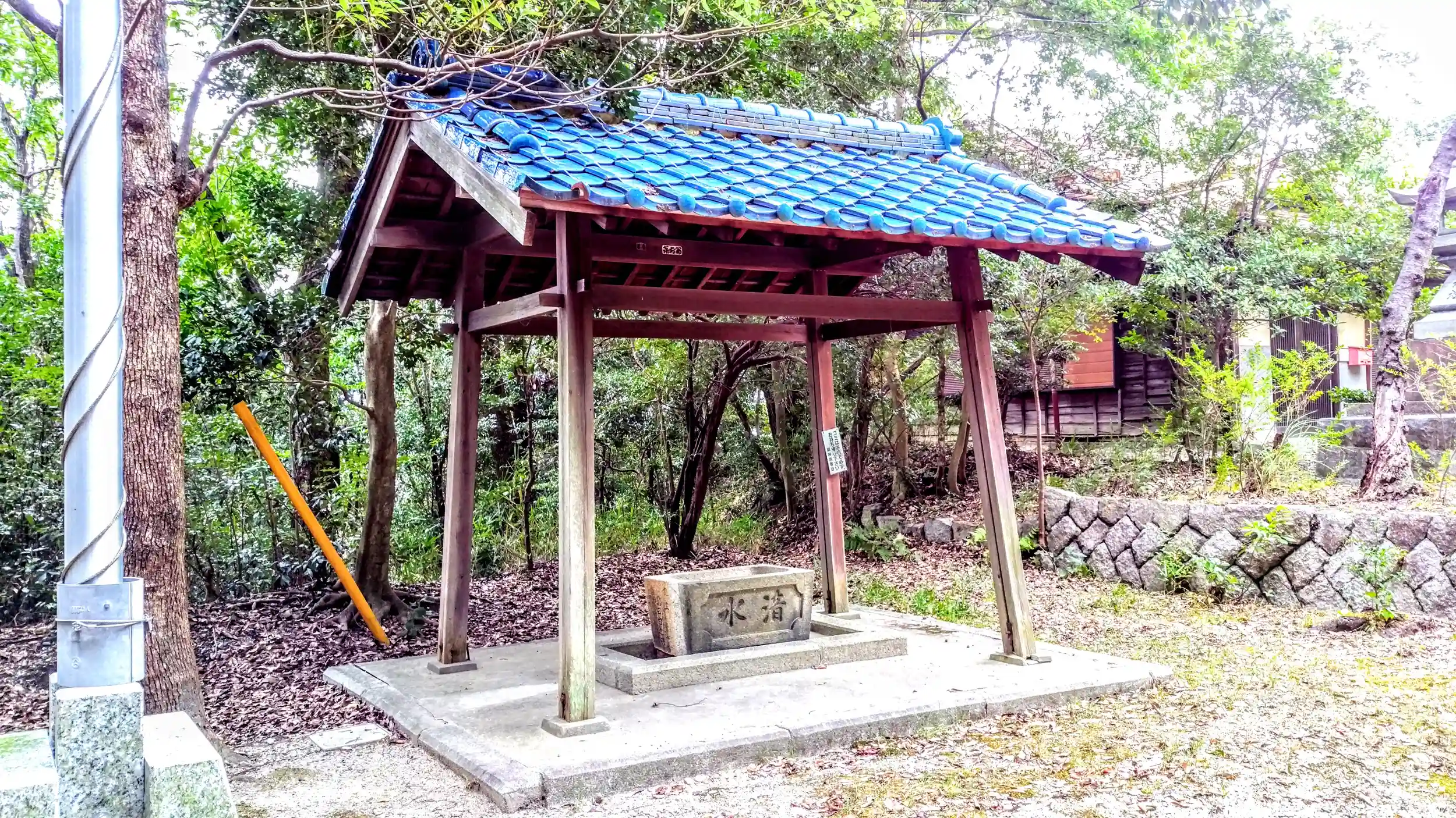 手水舎 屋根の瓦は磁器でできているのかな?