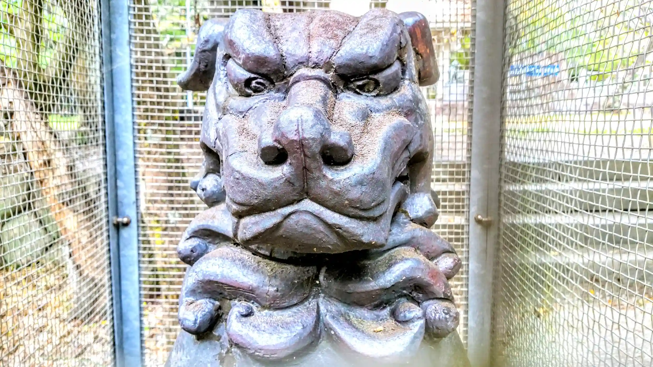 金網に囲まれた狛犬さん。