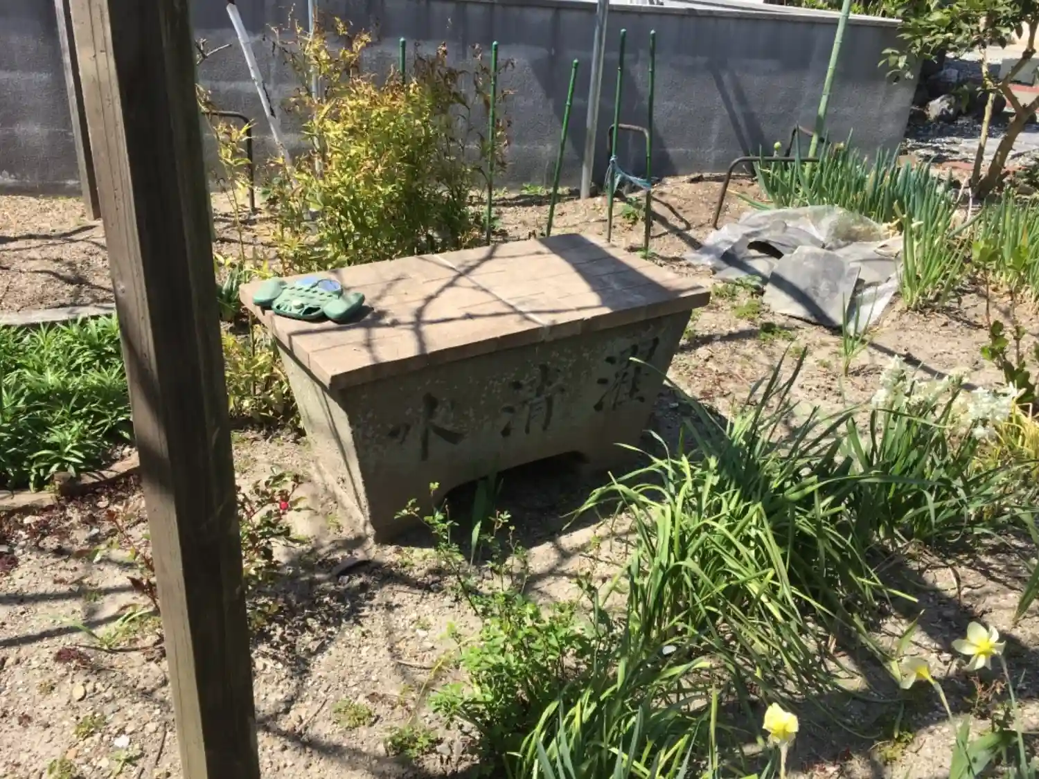 畑の中に手水鉢が