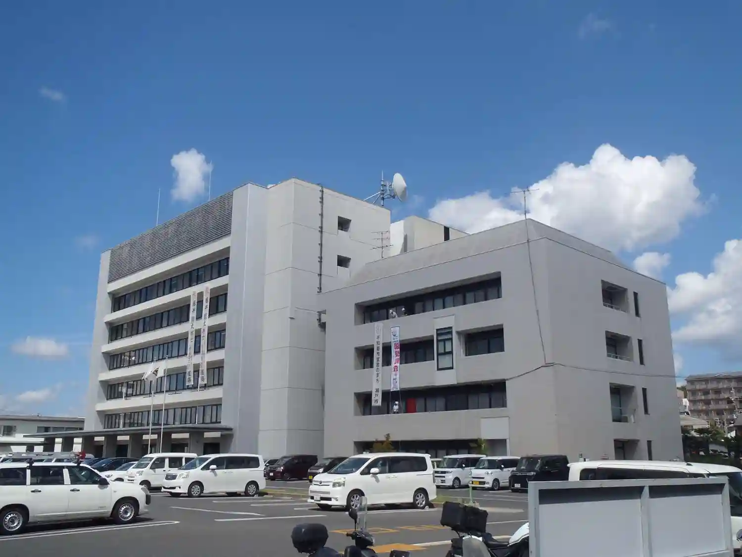 瀬戸市の市役所では「応援の幕」が2枚も垂れ下がっています。