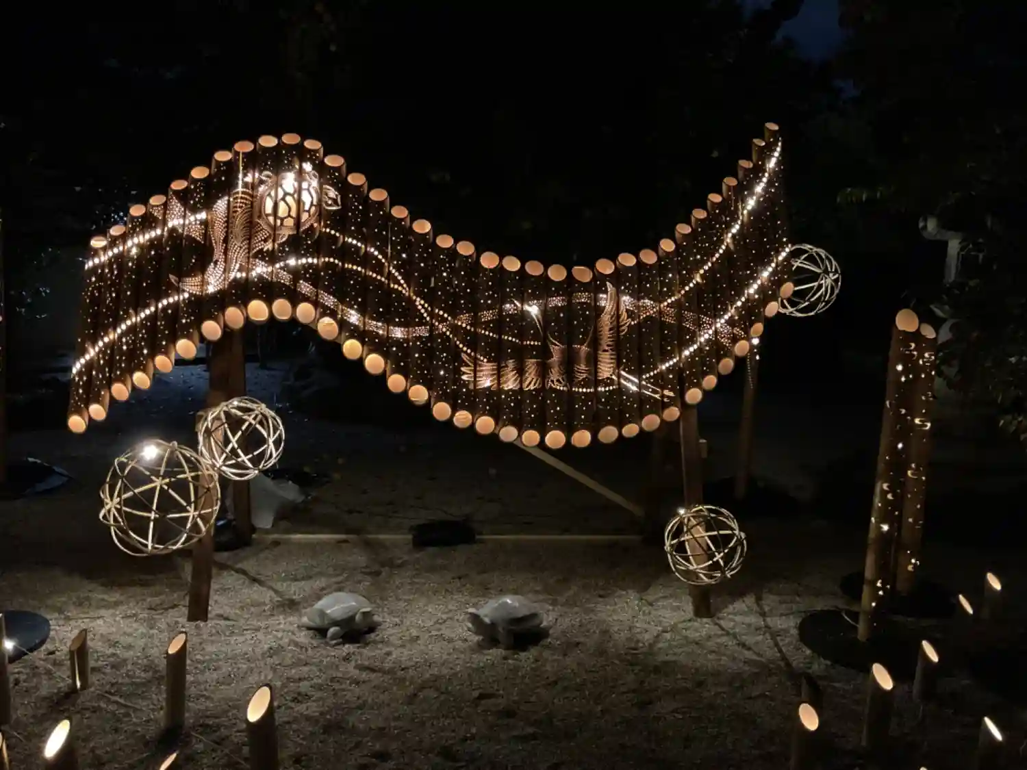 竹あかりのことを思うと、シンプルな庭園になっています。